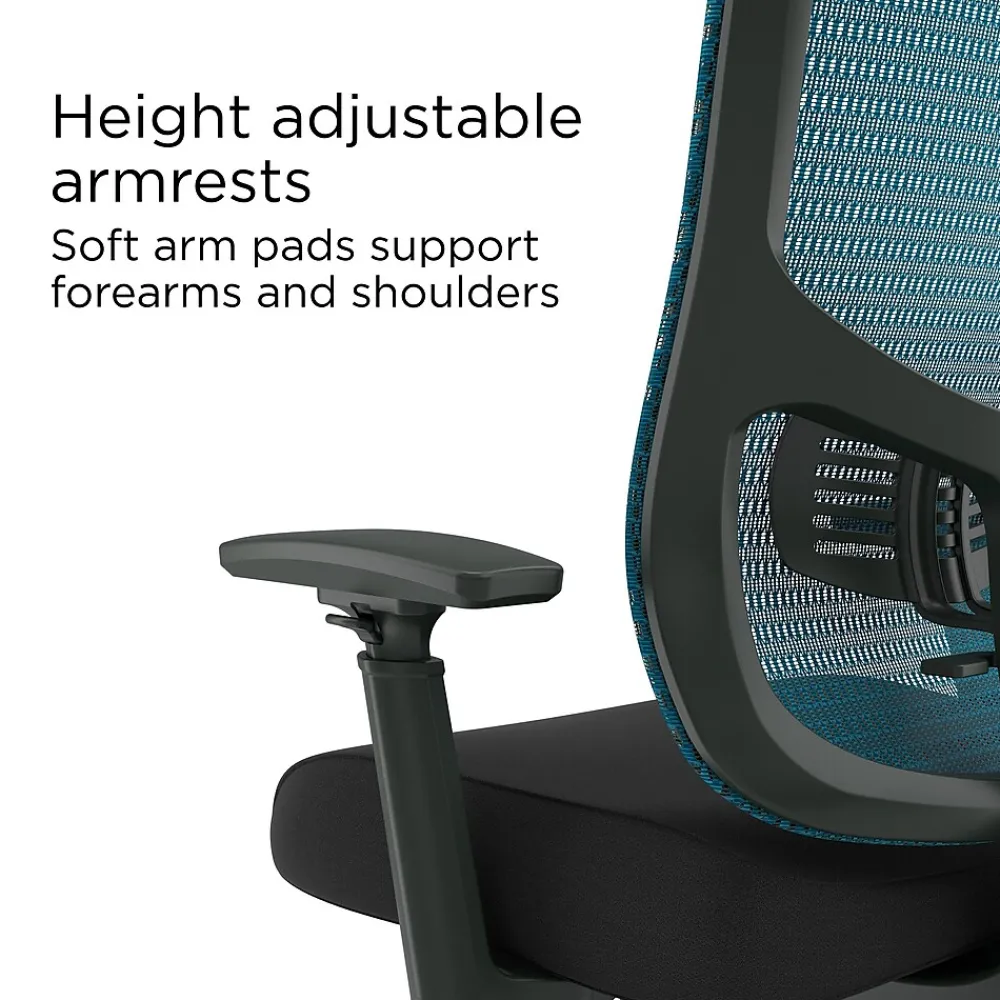 Upgrade your workspace with this durable chair that helps you focus and stay cool all workday long. With a breathable mesh back and seat, plus supportive cushions, this black Kroy blue task chair will help you work in comfort no matter the task. Adjustable lumbar support, seat- and arm-height adjustments, tilt locking tension knob, and durable casters on a sturdy five-point base will let you customize this chair to your personal comfort level. This Kroy task chair is a great value that will help you work more effectively, in style and comfort.