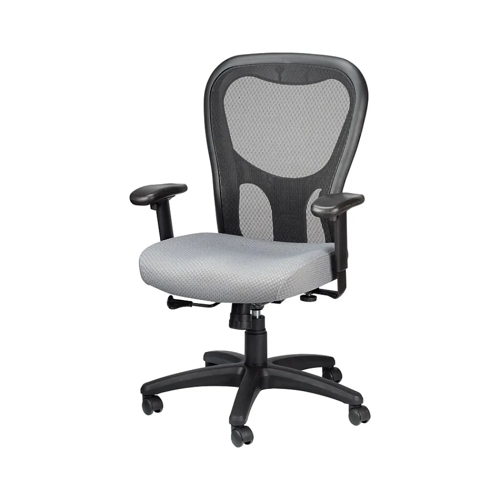 Complete your office setup with this Tempur-Pedic mid-back executive chair, which features a sleek gray and black color scheme. A TEMPUR material memory foam seat provides plush comfort, while the breathable mesh back helps you stay cooler throughout the day. Built-in lumbar support helps relieve tired and sore muscles, so you can stay seated during marathon work sessions. Use the tilt tension and tilt lock features to recline back in this chair and move the seat up and down using the height adjustment lever. Featuring a nylon five-star base and dual-wheel casters, this Tempur-Pedic mid-back executive chair rolls effortlessly across office floors.