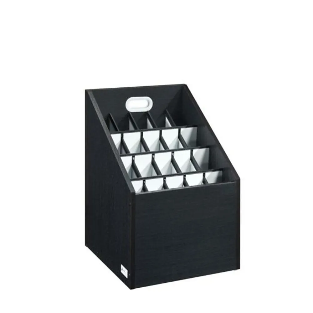 Office space tends to be limited, and when you work with maps, schematics, and blueprints, that space can be quickly overtaken. With our Black Wooden Upright Roll File with 20 Slots, you can economically solve this issue without taking up much room. It’s the ideal solution to store your maps, plans, and blueprints upright correctly. The amply sized 2.75” W x 3.46” L compartments can securely hold your blueprints and schematics without them overlapping. Not only will your office space become more organized, but additionally, your needed tools will stay safe and intact. The durable, glossy black wood grain finished fiberboard ensures support and longevity while being aesthetically pleasing. Our Upright Roll File with 20 Slots can be placed either on your desk comfortably or next to it. The included PVC nail feet will ensure that whatever surface you place our roll file on will be protected and scratch-free. Wherever you have space to put it, you can be assured that the roll file will blend in seamlessly. We’ve included screw hole covers because it’s the little details that matter. Also, your time is limited, so assembly is quick and easy, guaranteeing a robust and long-lasting product. Furthermore, to make it even more effortless, a handle is included with each roll file and is lined with plastic to ensure comfortability when moving it. All these fantastic features make our Wooden Upright Roll File with 20 Slots the perfect fit for your office.