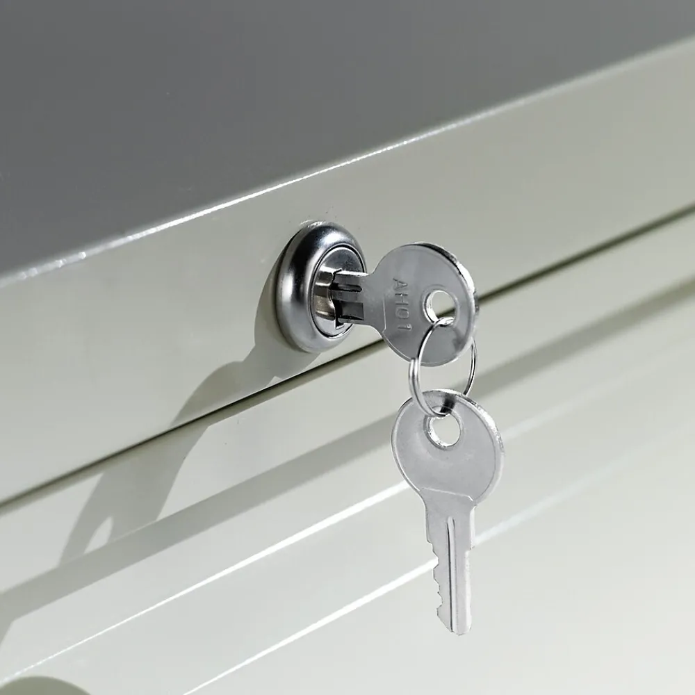 - Anti-tipping interlock system allows only one drawer to open at a time, single key core removable lock with two keys