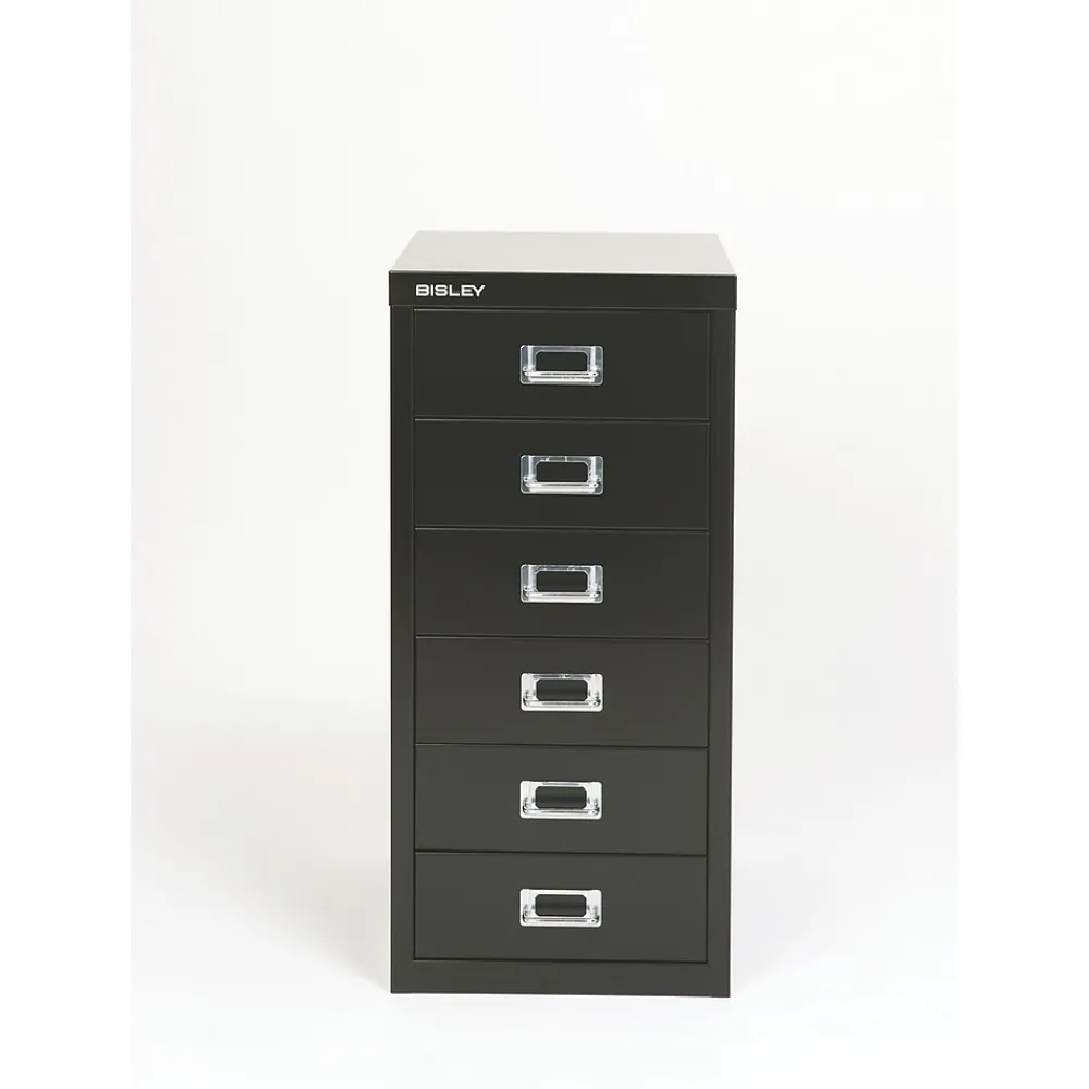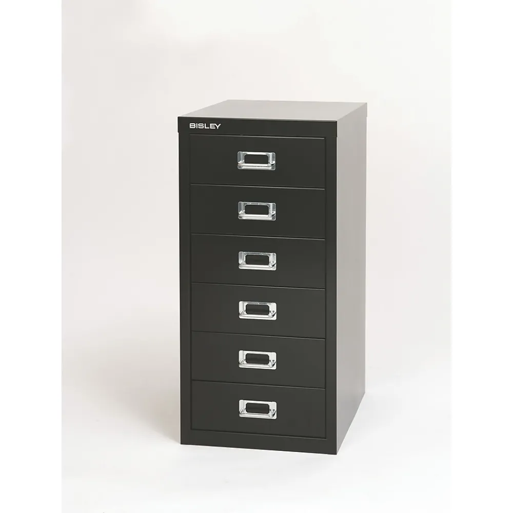 Slide this file cabinet under your desk for discreet and space-saving storage of A4- and letter-size files. Six drawers provide plenty of space to organize quarterly reports, contracts and invoices, while the under-desk design keeps your documents close at hand while you work. Welded steel construction and a powder-coat finish ensure lasting use, even with frequent handling.