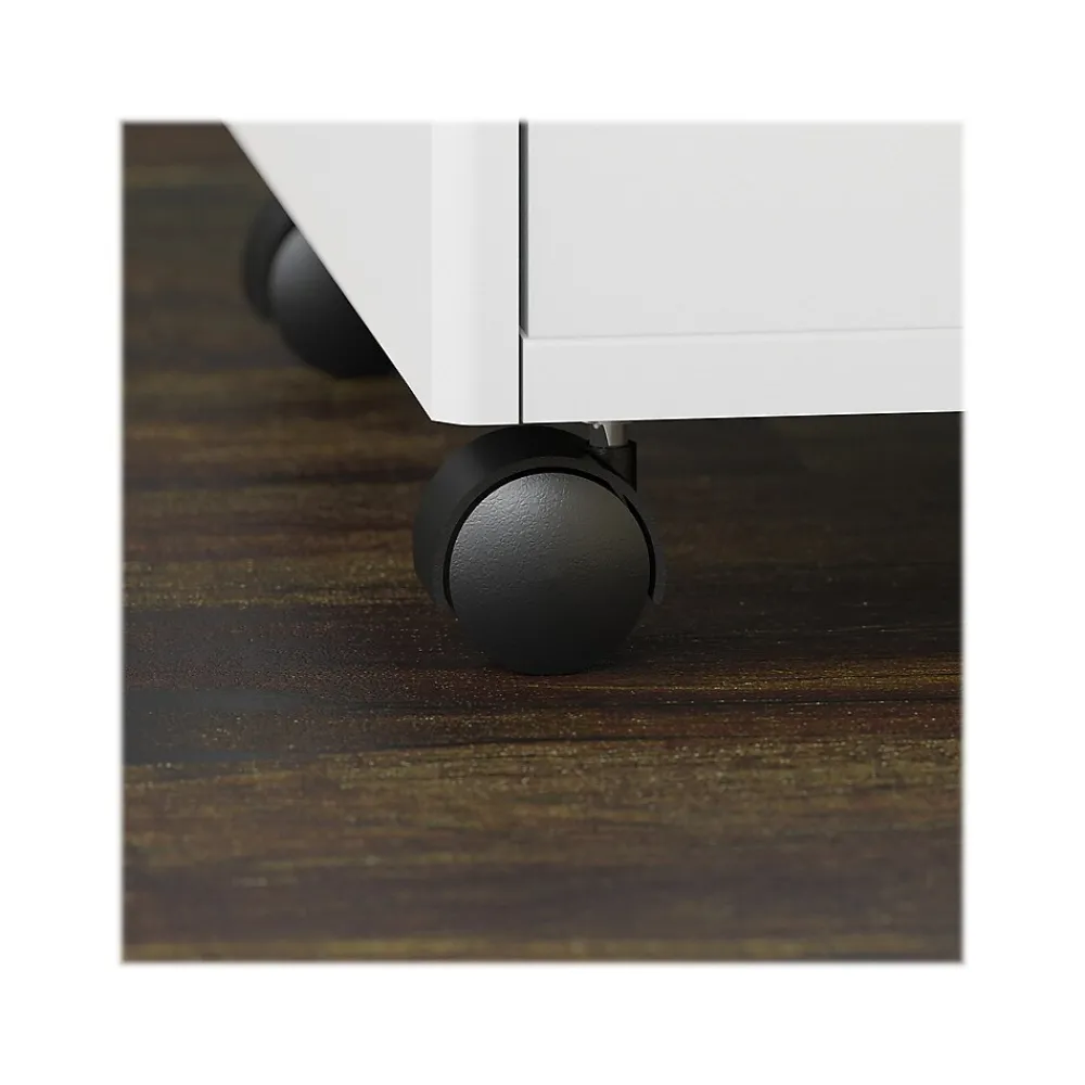 - Portable file cabinet rolls on dual-wheel casters and is finished on all sides for versatile placement