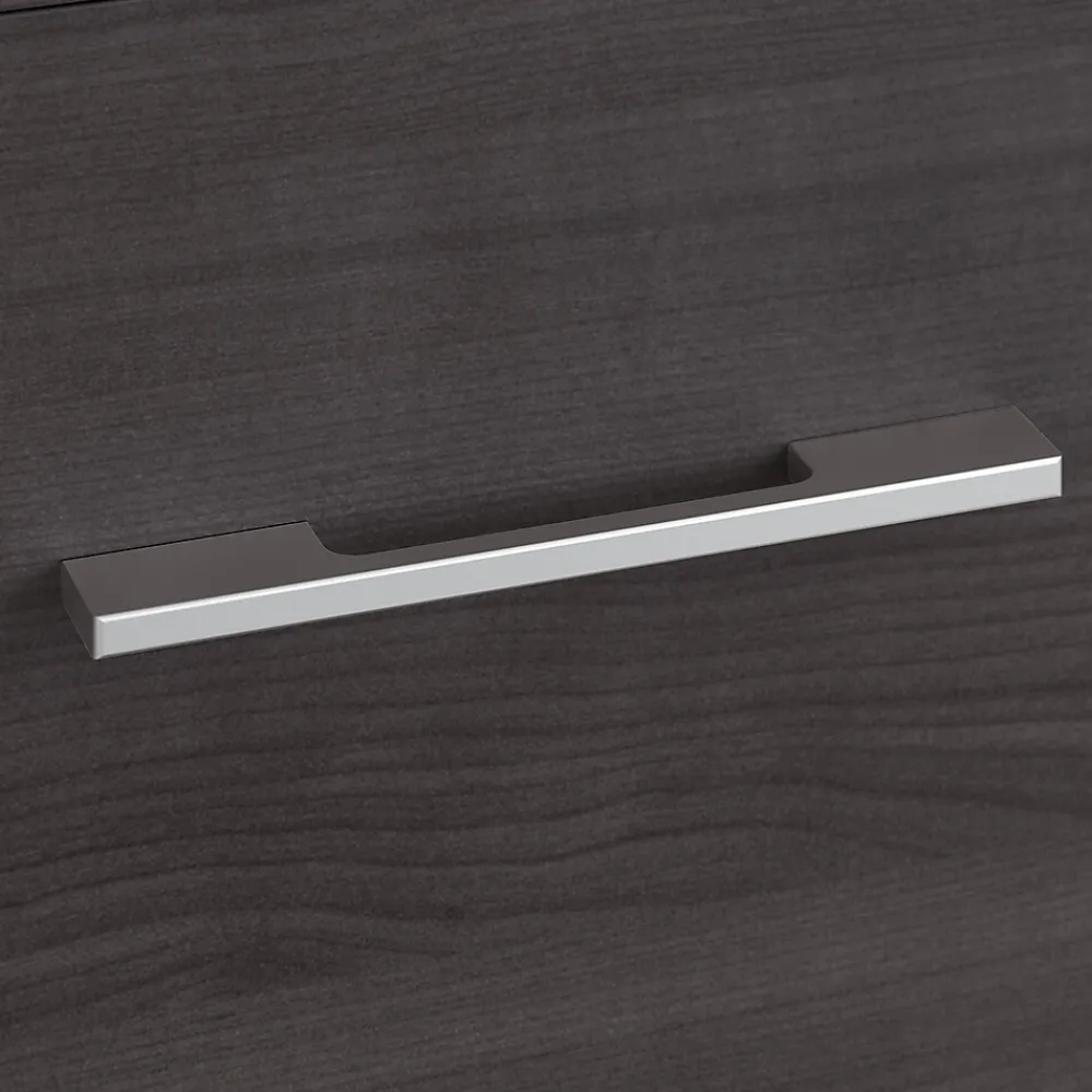 - Available in your choice of stylish black walnut, sand oak, modern hickory, and storm gray finishes with light silver drawer pulls