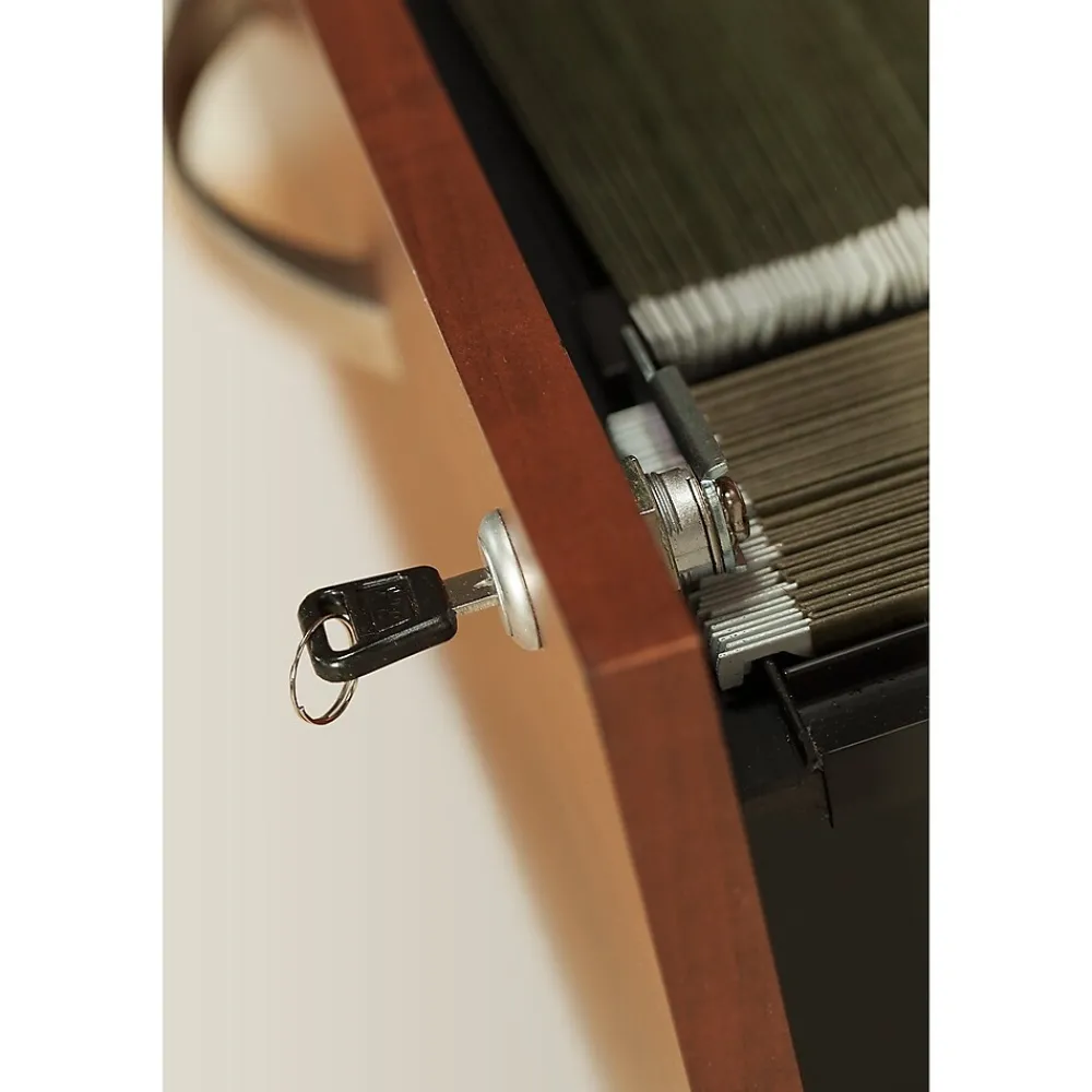 - Includes face front lock with interchangeable core in lower drawer that secures both the lower and upper drawer