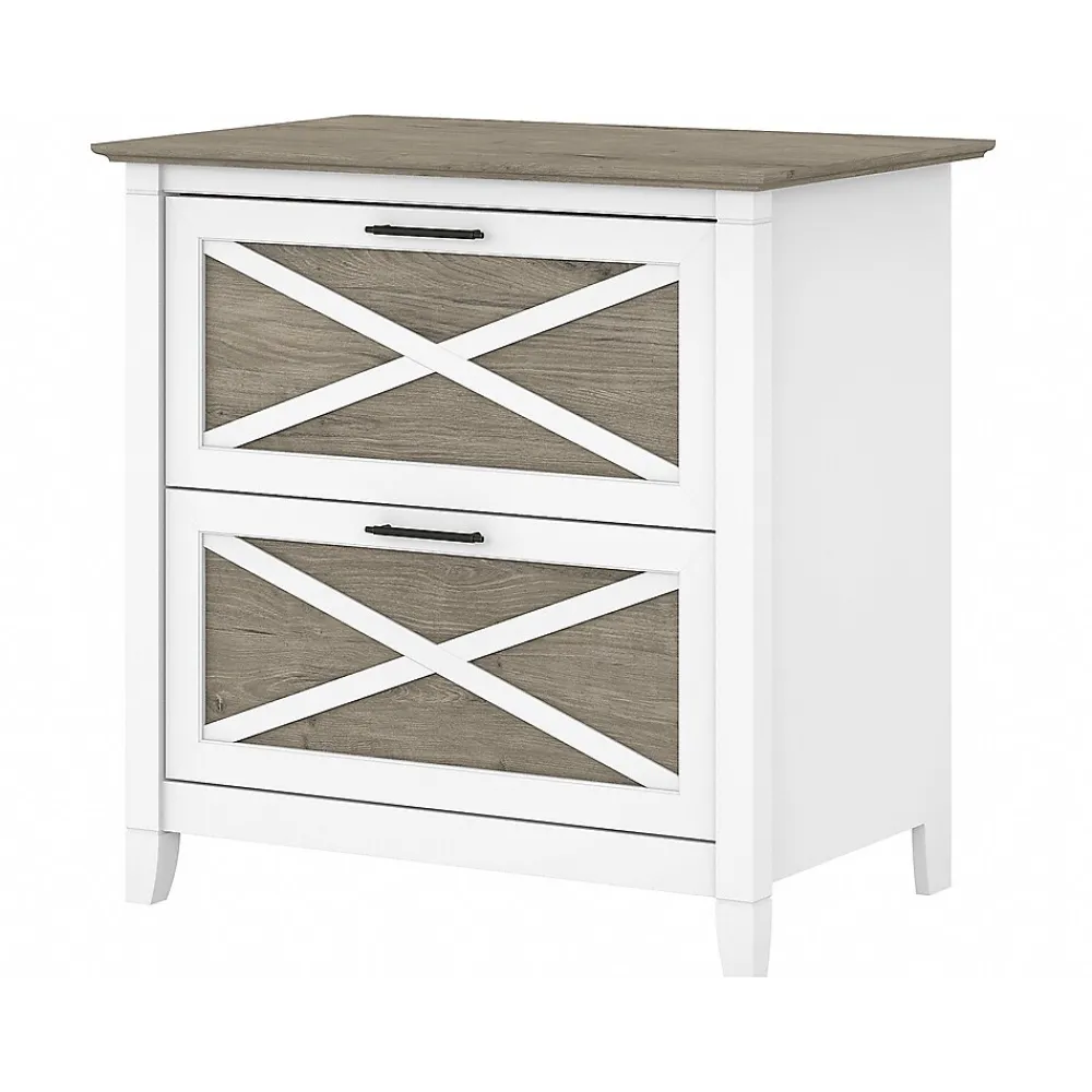 A natural fit for homes that embrace coastal and farmhouse decor, the Bush Furniture Key West two-drawer lateral file cabinet is perfect for organizing paperwork in virtually any room. Two file drawers open on smooth full-extension ball bearing slides for an easy reach to legal- and letter-size documents. Stylish X-shaped accents on the drawer panels create a relaxed style supported by a sturdy and attractive post leg design. This lateral file cabinet matches the height of any Bush Furniture Key West desk (sold separately) to create an extended work surface when placed side by side. The Bush Furniture Key West collection offers a wide variety of farmhouse furniture that makes building a complete home office or living room a breeze. This two-drawer file cabinet is tested to meet ANSI/SOHO quality standards for safety and performance and is backed by the Bush Furniture 1-year manufacturer limited warranty.