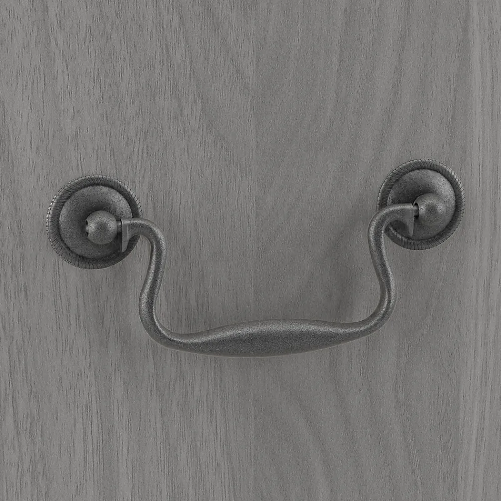 - Available in linen white oak or modern gray with distressed iron hardware and in harvest cherry with gold-finished brass hardware