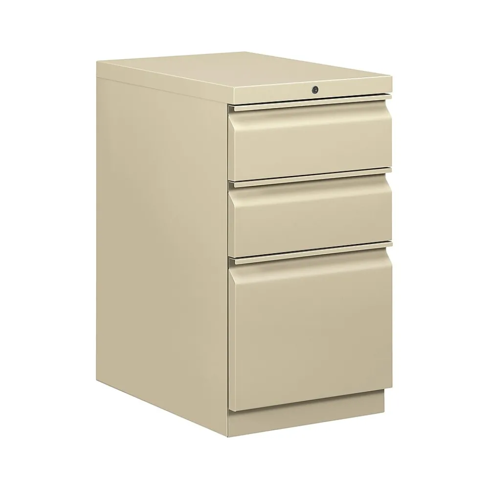 Create a more efficient filing system with this file cabinet. Three box drawers with ball bearing suspension provide easy-access storage for office supplies, and the file drawer at the bottom allows for organization of documents and hanging file folders. Measuring 28 inches tall, this HON Brigade vertical cabinet can fit under your desk to save space, or you can set it nearby for additional counter space.