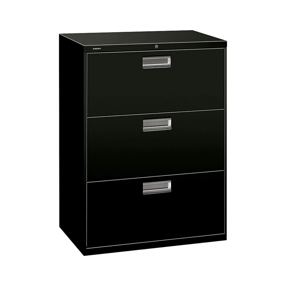 Give important files dedicated space in your office with this HON Brigade 600 series lateral file. A built-in counterweight prevents tipping when one of the three spacious drawers is opened, and a mechanical interlock prevents multiple drawers from opening at the same time. With a two-sided lock mechanism and removable lock core, this HON Brigade 600 series lateral file keeps sensitive documents securely tucked away.