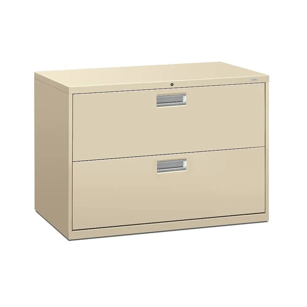 This two-drawer, 42″W model features a fully enclosed base to resist tampering. It accepts letter or legal hanging file folders. Bright Aluminum handle coordinates with Brigade pedestals. Finish color is Putty.