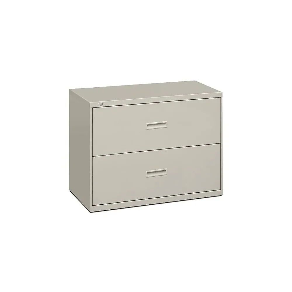 This two-drawer, 36″W model has a tamper-resistant enclosed base. Cabinet accepts letter or legal hanging file folders. Molded polymer handle is standard. Finish color is Light Gray.