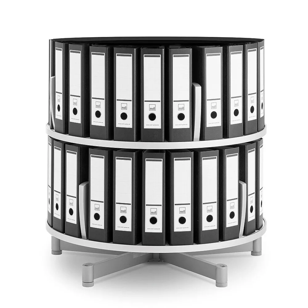 Moll® Two-tier binder and file storage carousel features 32″ diameter unit which offers abundant storage in a small area. Carousel shelf is protected with a hard rubber edge banding. Also seen in picture Top storage carousel (Item 277944) and Caster base (Item 277729) sold separately