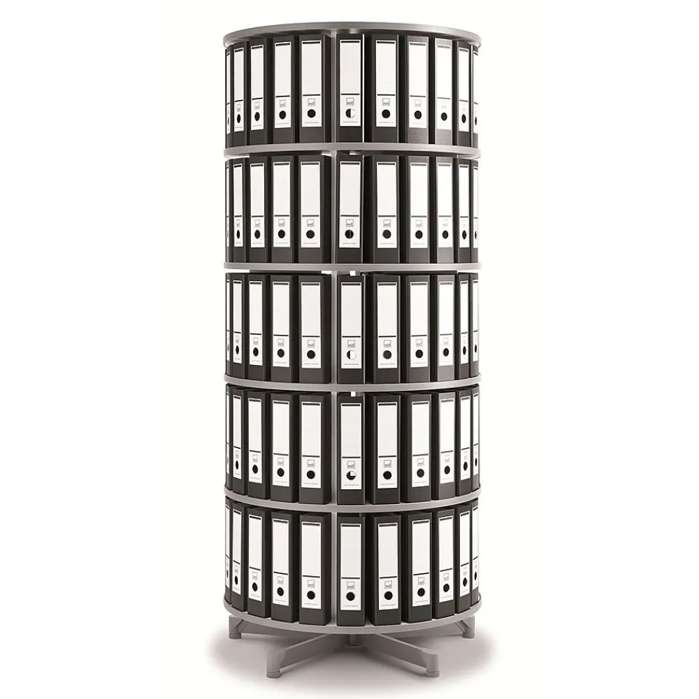 Moll® Five tier spin and file binder storage carousel can be accessorized with casters, organizer set and CD organizer. Carousel features slender 32″ diameter unit which offers abundant storage in a small area.
