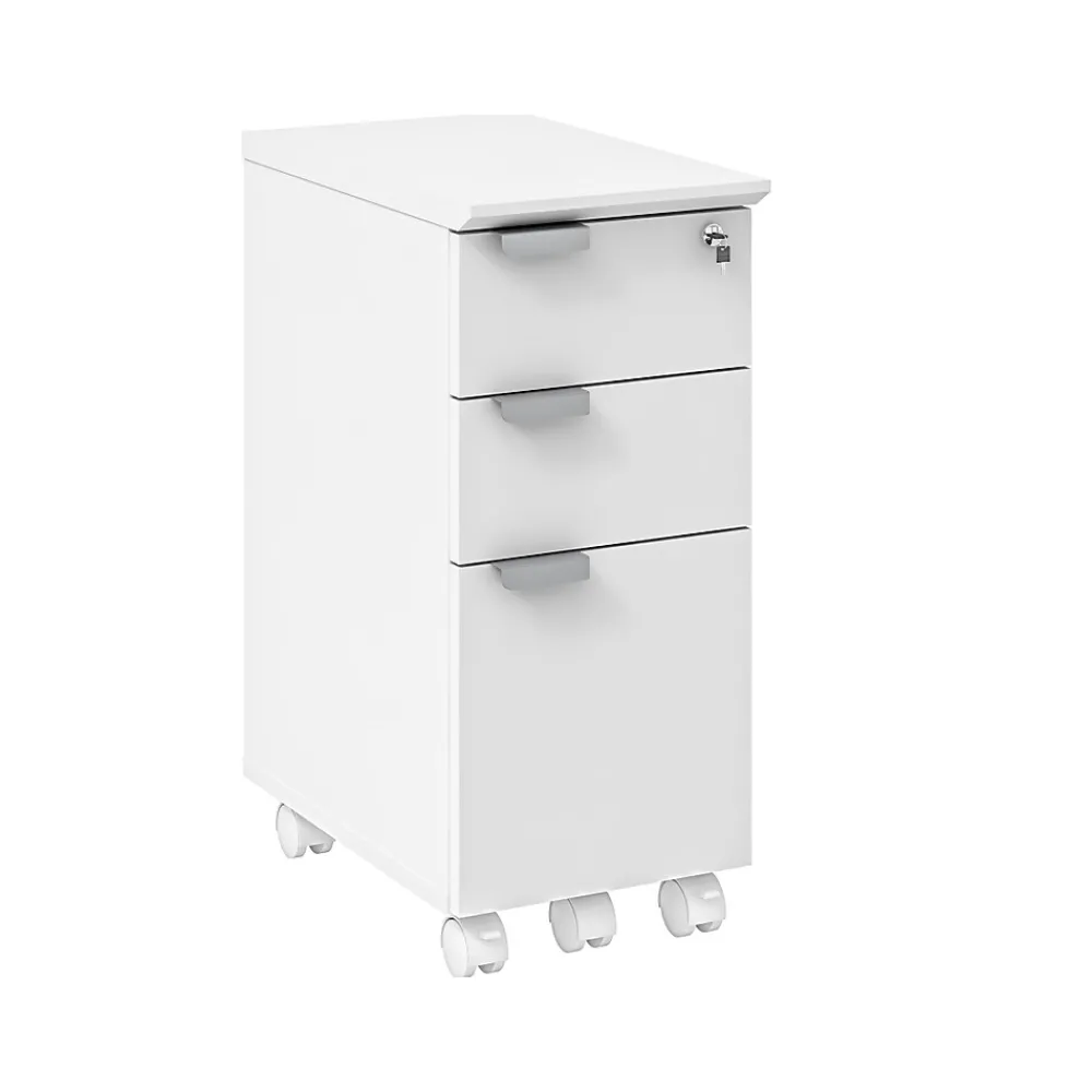- Five white casters are highly durable and allow you to easily move the storage pedestal anywhere you like it; the front three lock in place