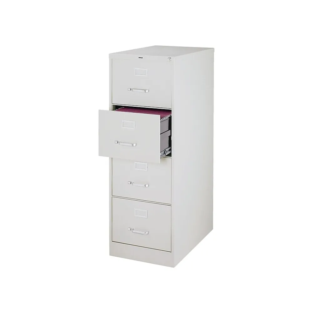 Sort and store paperwork with this letter/legal vertical file cabinet. The four drawers feature precision ball bearing glides to ensure they open and close smoothly. Aluminum frames provide space for custom labels, and a core removable lock keeps sensitive documents secure. Adjustable wire followers keep hanging files neatly in place. This letter/legal vertical file cabinet comes fully assembled for immediate use.