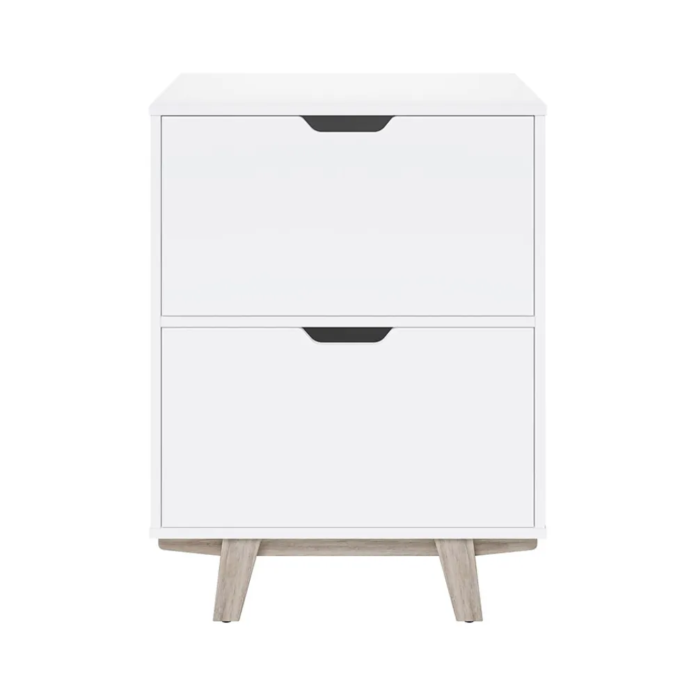 - Two-drawer lateral file cabinet holds letter- or legal-size documents