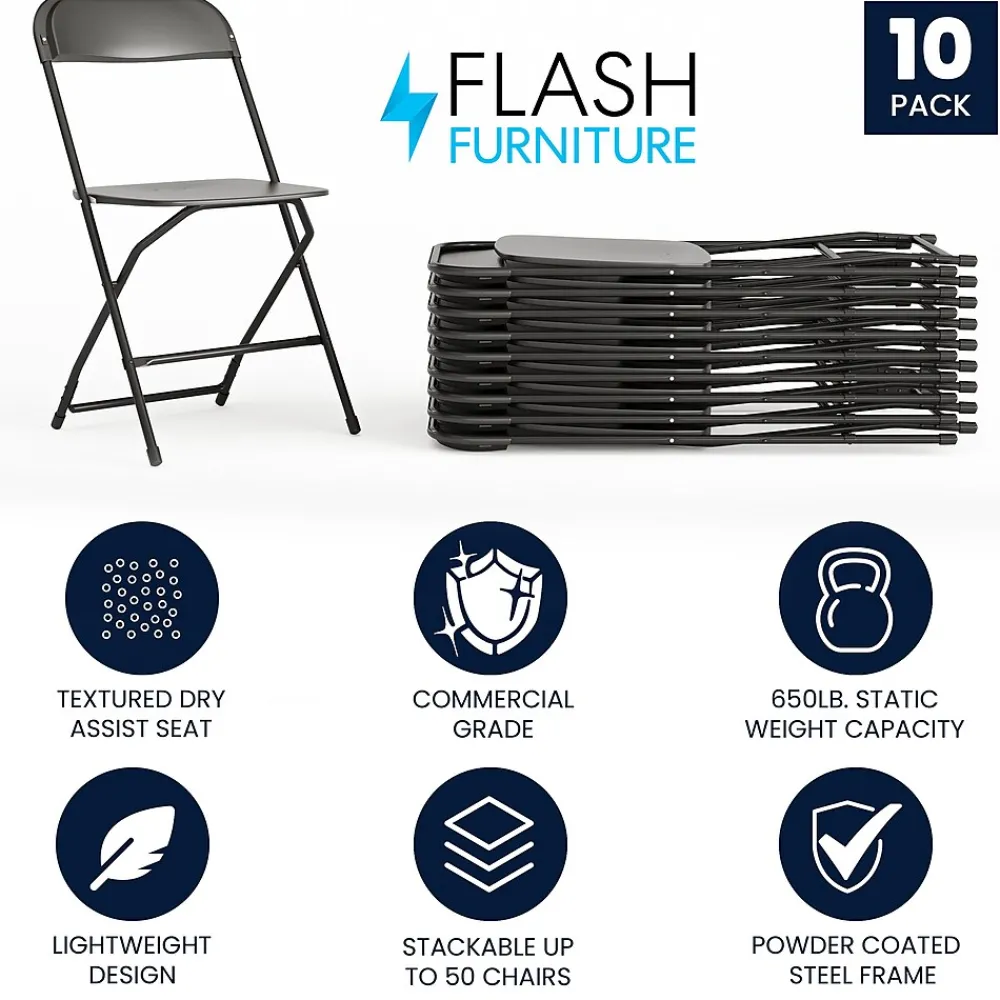 Commercial-grade plastic folding chairs designed to be lightweight but durable. This product is engineered and built with premium materials that will withstand heavy duty use for event, business and home usage. These folding chairs will nest easily to stack 50 high from the floor and feature a textured contoured plastic seat for the highest level of comfort and security. With a variety of color options you can choose what would best pair with your event needs. This is a commercial-grade on-demand seating solution convenient for weddings, school functions, barbecues, game night, and catering events. Stay comfortable during social events with the gentle contour shaped seat and back. Folding chair highlights: – Ready-to-use with no assembly required – Hassle free stackable storage – Textured seat designed for maximum comfort and security – Floor caps to prevent surface and flooring damage – 650LB weight capacity These low-maintenance party event chairs wipe down easily after luncheons and stack neatly for storage or floor maintenance. Make a smart investment by purchasing multiple plastic folding chairs for your rental business, waiting room or corporate training rooms. Purchase our folding chair truck for quick and easy set up and take down.