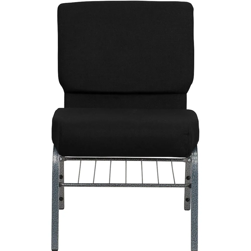 This beautiful church chair will keep your guests supremely comfortable whether you’re hosting an all-day seminar, serving a 10 course meal or delivering your most inspirational sermon. This chair offers an advantage over pew seating with the flexibility of creating different seating configurations. The chair’s generously padded back and 4″ thick seat are covered in durable fabric upholstery. The seat has a waterfall edge that reduces pressure on the legs. This chair features a book pouch on the back of the chair and a book rack under the seat for storage. Built-in ganging brackets connect your chairs and maintain nice, straight rows. Its sturdy 16 gauge steel, gold vein frame, with gracefully angled legs, has been tested to hold up to 800 pounds and plastic rocker glides protect your floor by sliding smoothly. This Church Chair is an excellent option for hotel lobbies, banquet halls, conference facilities and worship centers.