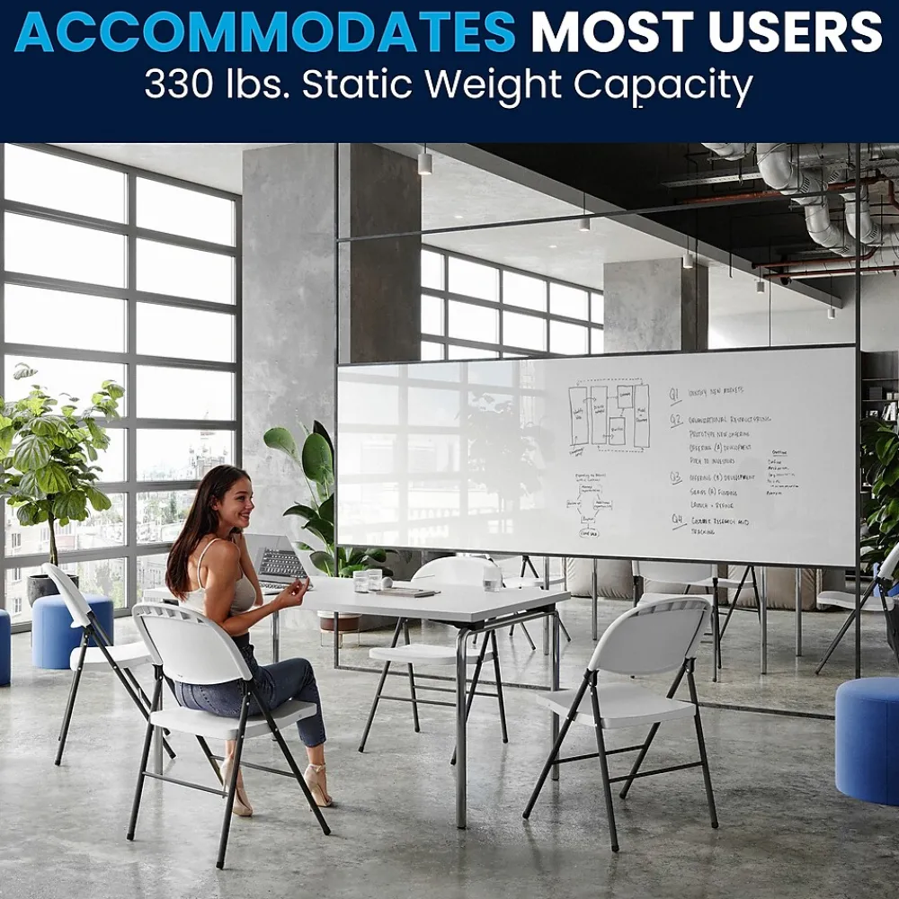Feel free to host the holidays this year or plan a perfect event or gathering with this Flash Furniture HERCULES Series granite white plastic folding chair with charcoal frame. A practical choice for party rental companies, event venues, or for regular use in your home, this folding chair with steel frames is built to last. A molded seat provides comfort to guests while the heavy-duty frame supports up to 330 lbs. The textured seat ensures safe and comfortable seating. After use, place the chairs from the two-pack on top of each other or in a row. You’ll always have extra seating on hand for guests for a game night, party, and Thanksgiving or Christmas dinner. The plastic chair offers a versatile seating solution while being easy to maintain and is designed for portability.