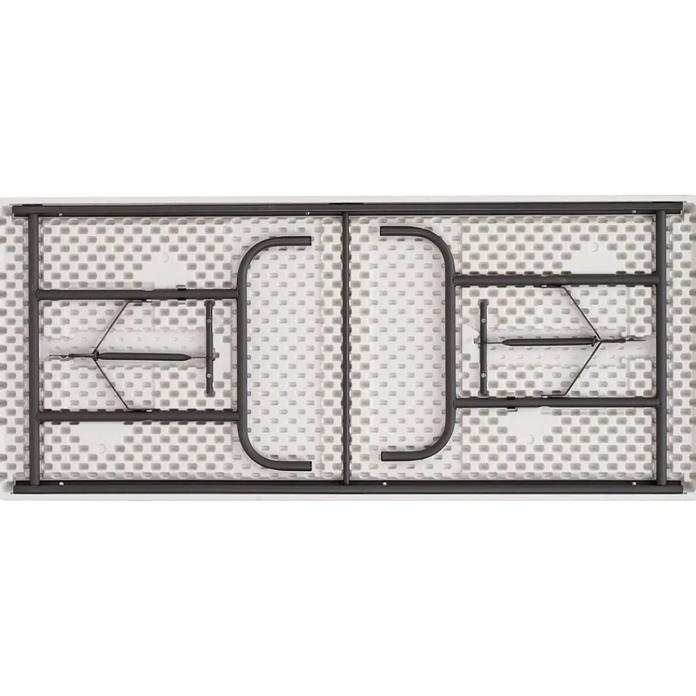 Iceberg 8′ Heavy-duty commercial resin folding banquet table in platinum granite finish has 2″ thick blow molded high impact polyethylene scratch/stain resistant top. Table measures 29″ x 30″ x 96″ and holds up to 1200 lbs weight capacity.