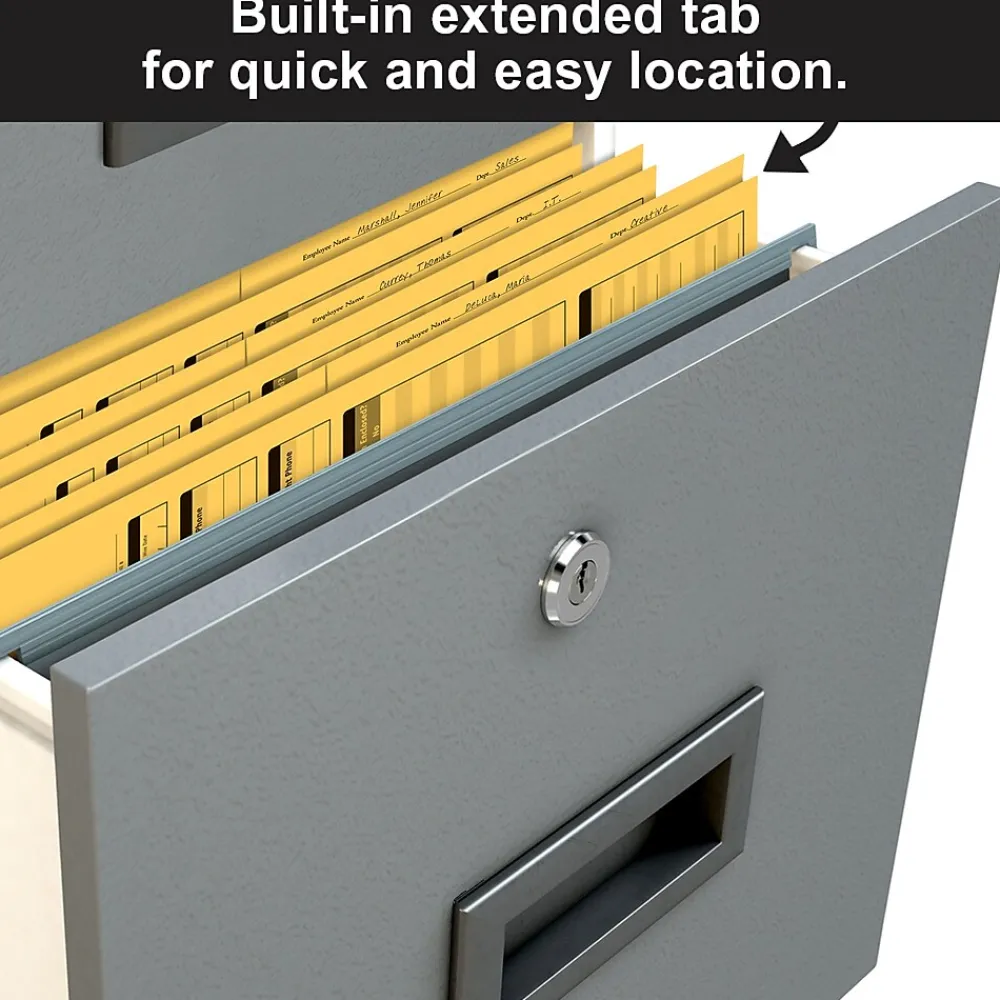 - Extended tab on folder and distinct yellow color helps easily locate employees from file cabinets
