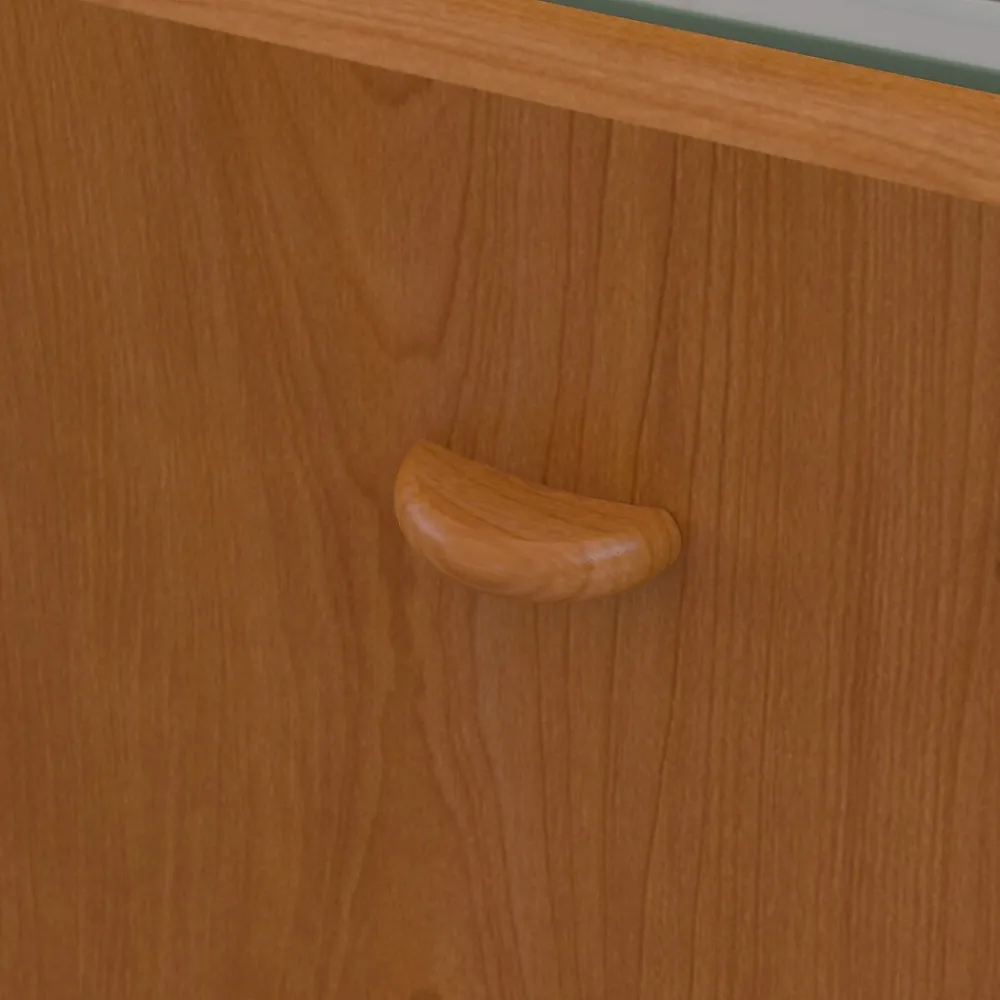 - Thermally fused laminate finish, durable edge banding and thick end panels resist damage