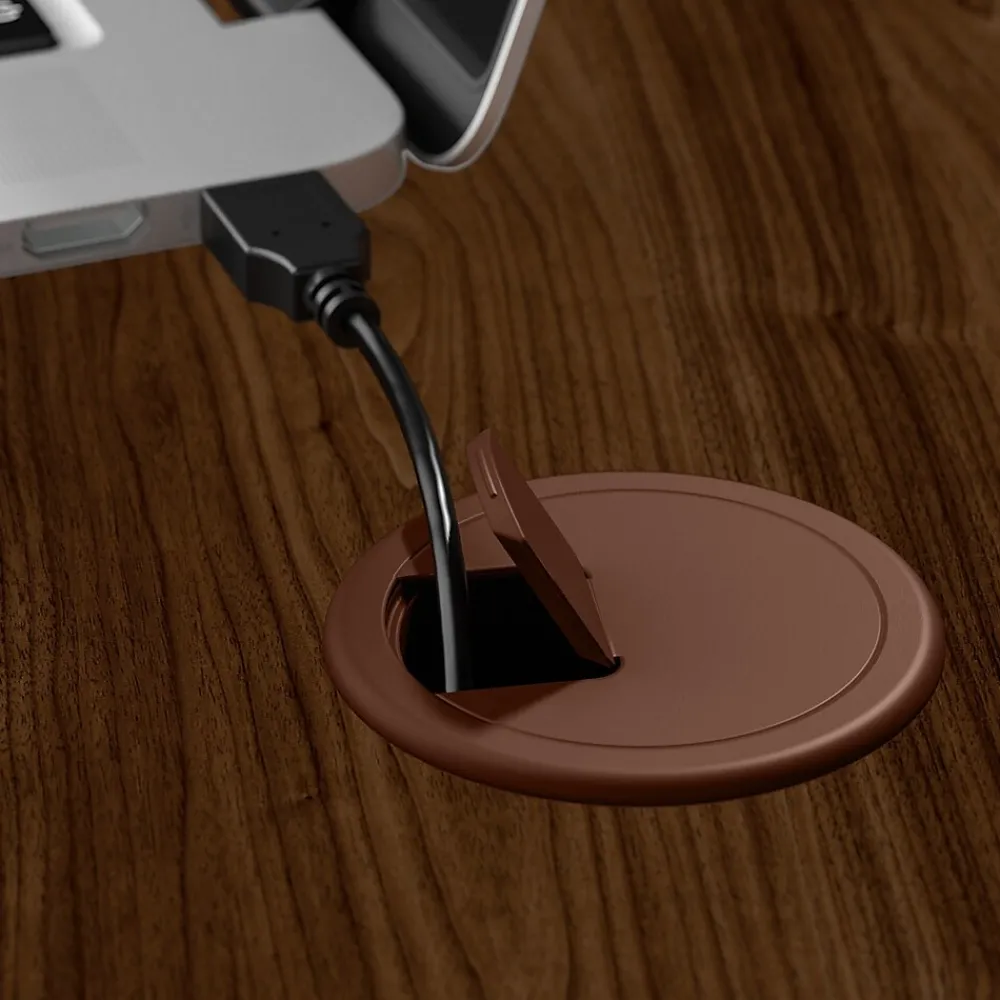 - L Desk’s surface features built-in wire management grommets to keep cords and cables out of the way