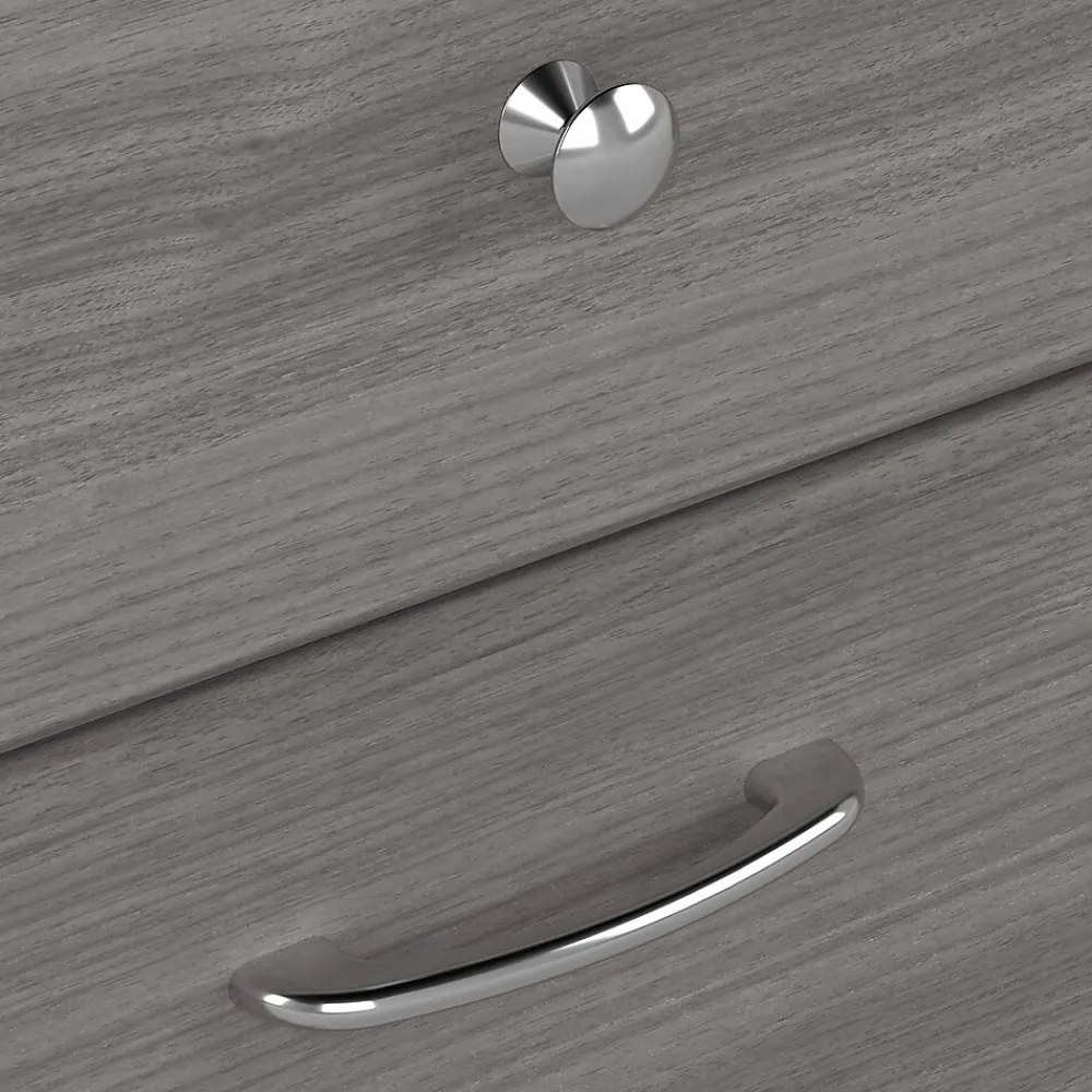 The Bush Furniture Cabot 60W L Shaped Computer Desk with Storage presents a home office solution with transitional style. Take advantage of the spacious L Shaped Desk surface to spread out with the materials you need to power through your next project or assignment. The durable desktop supports up to 200 pounds and has built-in wire management to keep cords and cables out of the way while you work. Organize materials inside a storage cabinet with one adjustable shelf behind a fluted glass door. The file drawer opens on smooth full-extension ball bearing slides for an effortless reach to letter, legal, and A4-size paperwork. A box drawer and two open cubby spaces are ideal for work-in-progress and frequently used items. This corner desk with drawers and storage has been rigorously tested to meet or exceed ANSI/SOHO standards for safety and performance and is backed by a 1 Year Warranty.