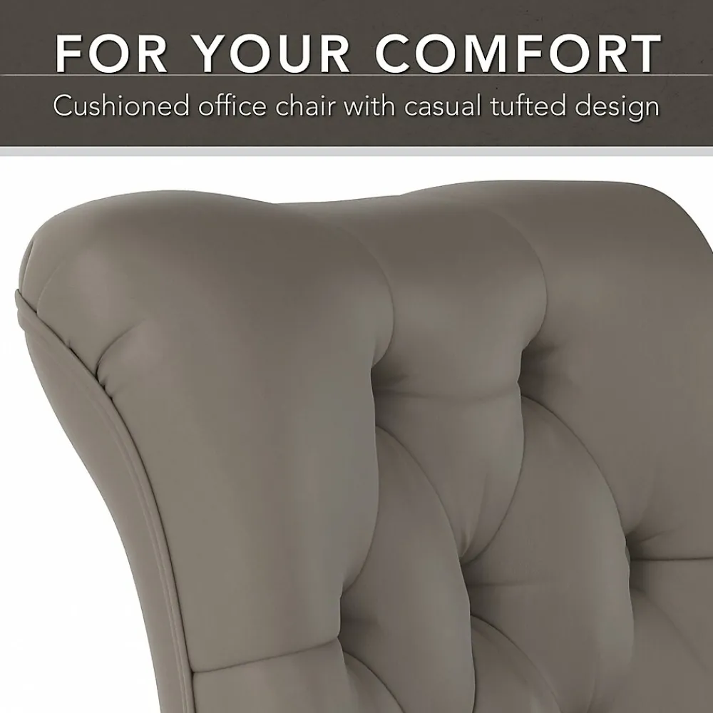 - Office chair’s casual button-tufted upholstery perfectly complements the desk’s relaxed appearance