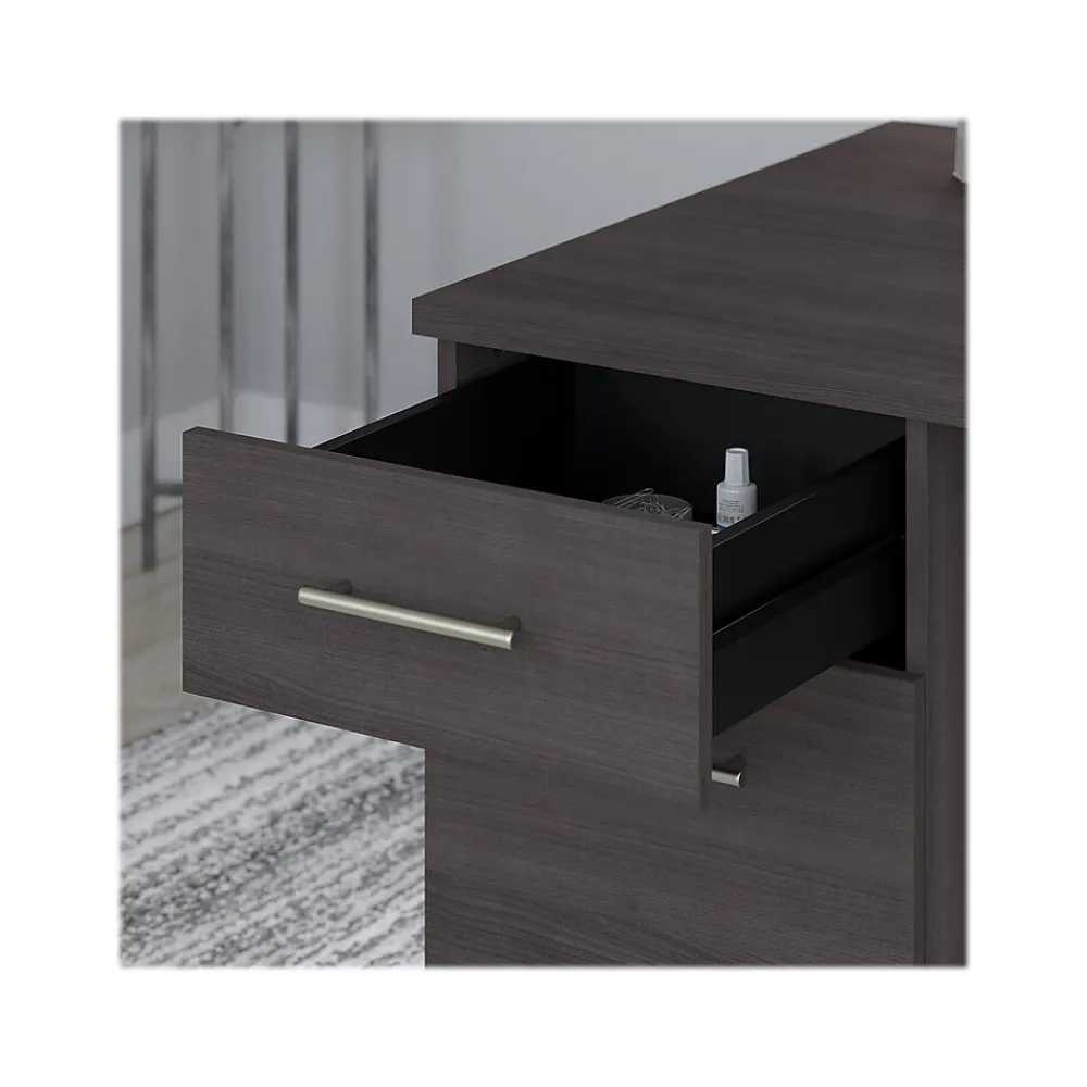 - Bundle includes: 71″W office desk with drawers, 42″W sit to stand return, 71″W hutch, 30″W two-drawer lateral file cabinet
