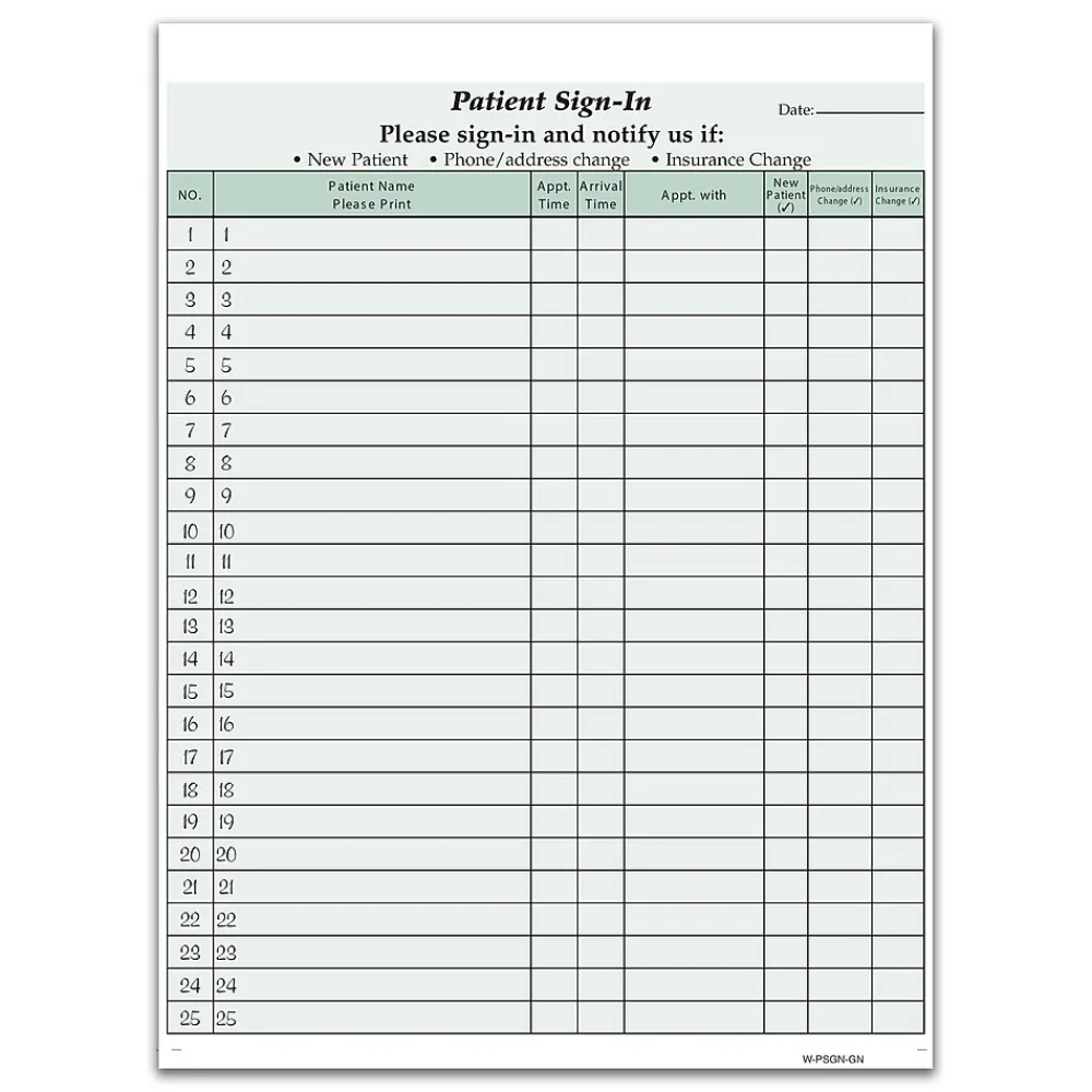 - Patient Sign-In Label forms to sign in your patients confidentially