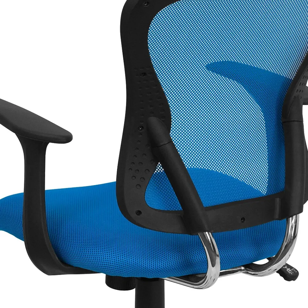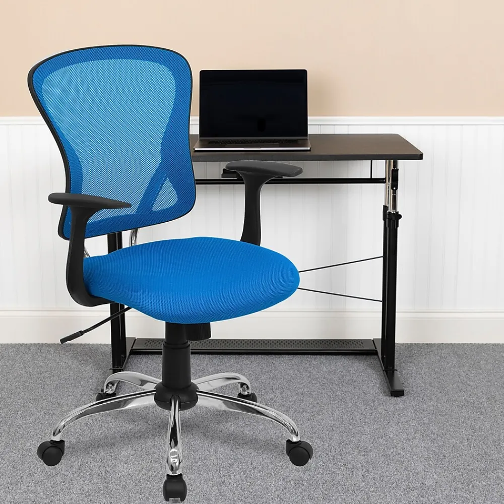 Having the right chair in your workspace is essential for your performance and well-being. Investing in a good task chair increases productivity, promotes good posture and gives a professional look to any office. This blue task chair is adjustable to accommodate many different body types. The breathable mesh back allows air to circulate to keep you cool. The colorful, generously padded mesh seat will add a vibrant, lively look to your space while keeping you comfortable. A mid-back office chair offers support to the mid-to-upper back region. The waterfall front seat edge removes pressure from the lower legs and improves circulation. 360 degree swivel and pneumatic seat height adjustment lever give you a custom fit. The chrome base adds a stylish look to complement a contemporary office space. With its attractive styling and versatility, this chair is an excellent choice for the office, dorm, classroom or home.