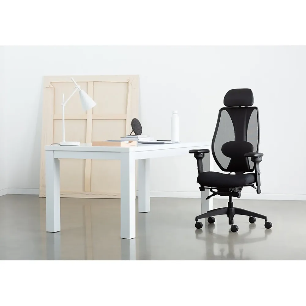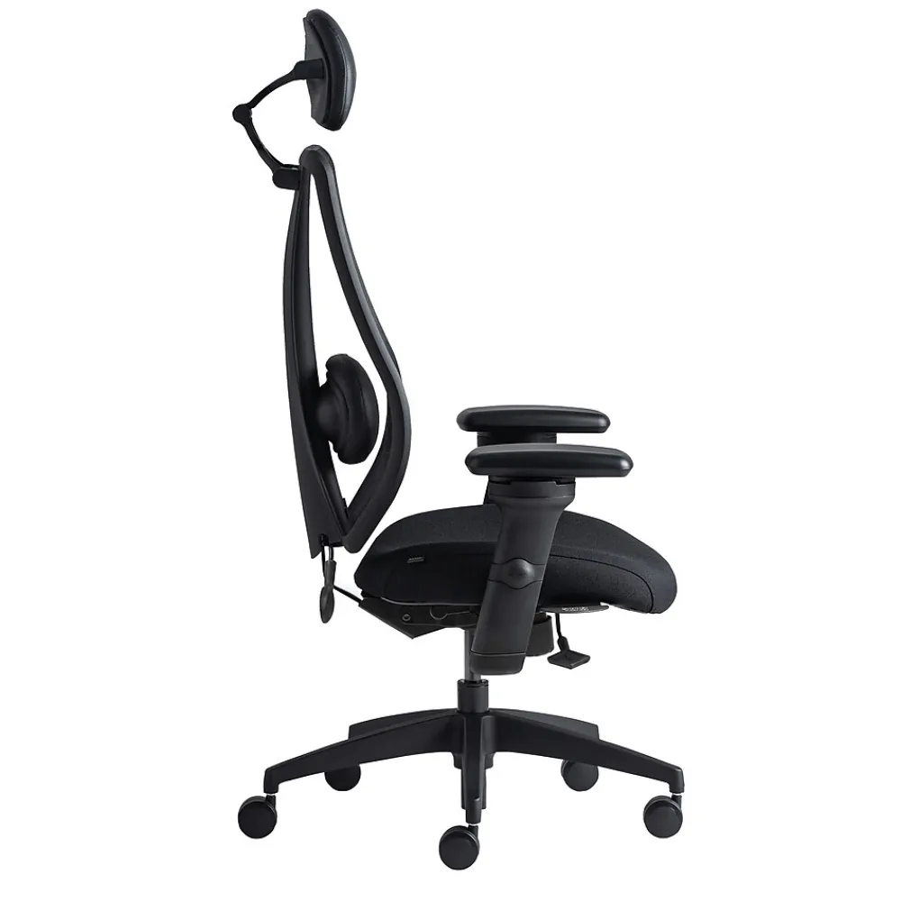 The sCentric Hybrid ergonomic office chair comes with patented adjustment features to enable you to sit in your ideal posture. It features a mesh backrest with a classic foam and fabric seat for a superbly comfortable seating solution. It combines 5″ of infinite back height adjustment with a dual curve elastomeric mesh backrest that mirrors the natural curvature of your spine. These features let you position the sCentric lumbar support exactly where you need it for maximum support. The patented adjustable headrest can be repositioned as you change postures throughout the day. The armrests have height, width, lateral and patented 360-degree swivel adjustment letting you assume neutral typing, texting or reading positions. For easy identification the commonly used adjustment paddles are designed with unique geometric shapes making it easy for you to change your posture throughout the day. The sCentric Hybrid ergonomic task chair is BIFMA Compliant, GreenGuard Gold and LevelCertified