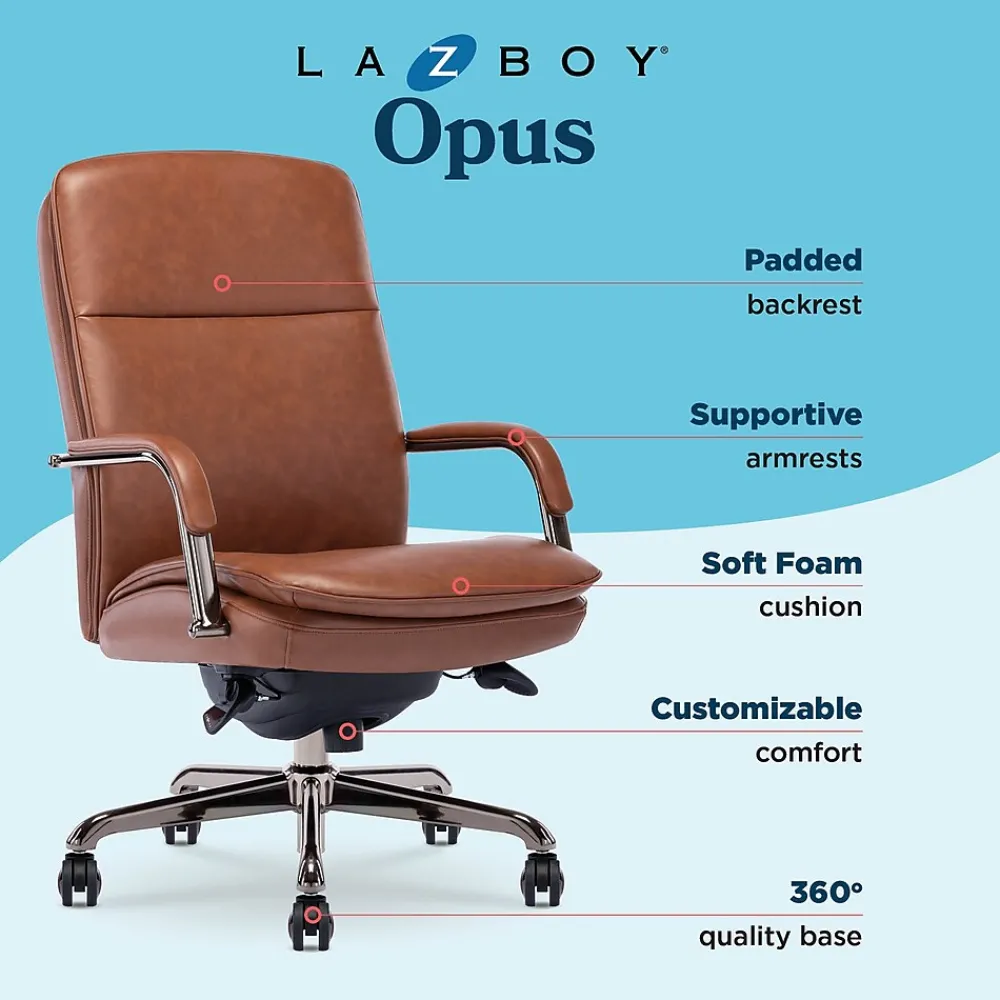 La-Z-Boy offers quality furniture for every room, from stylish sofas and loveseats to supportive recliners and office chairs. For over 95 years, we’ve been bringing comfort and lasting quality to homes, all crafted with a dedication to excellence. We’re passionate about creating furniture that fits your life, with endless styles to match your home. Imagine the La-Z-Boy Opus Executive Chair as the centerpiece of your office. Its sleek design blends modern sophistication with luxurious comfort. The Opus embraces minimalist chic with clean lines accented by a single, delicate channel tuft on both the seat and backrest. The piped edges adds a tailored finish while the sculpted, industrial-inspired arms and your choice of a polished gold, graphite, or chrome base elevate the entire look. This stunning mid-back chair prioritizes your well-being as much as its aesthetics. Supportive contours adapt to your posture, while the double-layer, semi-plush cushion seat and padded armrests provide comfort throughout the workday. It feels like having your favorite recliner right at your desk. Upholstered in easy-care bonded leather, the Opus comes in 5 timeless colors (white, gray, cognac, black, and dark brown) to complement your existing décor. The sturdy metal base lets you swivel with ease, and the dual casters can handle the deepest rug and carpet. Adjusting the height and tilt is a breeze with the handy seat-side fingertip control panels to find your ideal seating position. Upgrade your workspace, home office, or the corner office with a chair that mixes effortless style and workday comfort to look as good as it feels to sit in. La-Z-Boy is a trademark of La-Z-Boy Incorporated and is used under license to Living Style (Singapore) Pte. Limited.