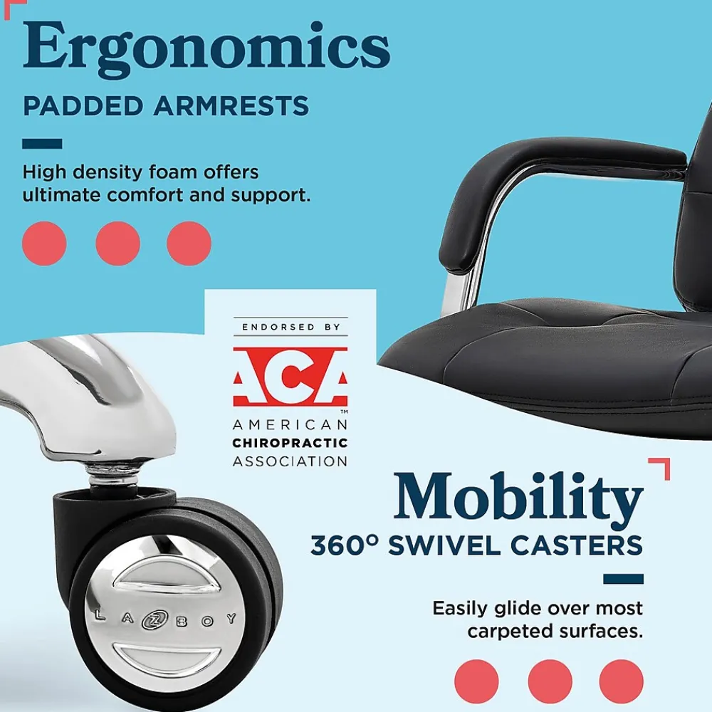 La-Z-Boy offers quality furniture for every room, from stylish sofas and loveseats to supportive recliners and office chairs. For over 95 years, we’ve been bringing comfort and lasting quality to homes, all crafted with a dedication to excellence. We’re passionate about creating furniture that fits your life, with endless styles to match your home. Imagine the La-Z-Boy Sonata Executive Chair as the centerpiece of your office. Its sleek design blends modern sophistication with luxurious comfort. The Sonata embraces minimalist chic with gentle curves accented by timeless button-tufting on both the seat and backrest. The double-stitching adds a tailored finish while the industrial-inspired arms and your choice of polished gold, graphite, or chrome base elevates the entire look. This stunning mid-back chair prioritizes your well-being as much as its aesthetics. Subtle contours in the backrest adapt to your posture, while soft armrests provide ergonomic support for your shoulders. The double-layer, semi-plush seat cushion is filled with high-density foam for comfort throughout the workday. Wrapped in a durable bonded leather that’s easy to care and clean, the Sonata comes in 5 classic colors – White, Gray, Cognac, Black, and Dark Brown – to find the perfect match for your decor. The sturdy metal base lets you swivel around with ease, and the matching dual casters handle even the deepest office rug and carpet. Adjusting the height and tilt is a breeze with the handy seat-side accent fingertip controls to find your ideal seating position. Upgrade your workspace, home office, or the corner office with a chair that mixes effortless style and workday comfort to look as good as it feels to sit in. La-Z-Boy is a trademark of La-Z-Boy Incorporated and is used under license to Living Style (Singapore) Pte. Limited.