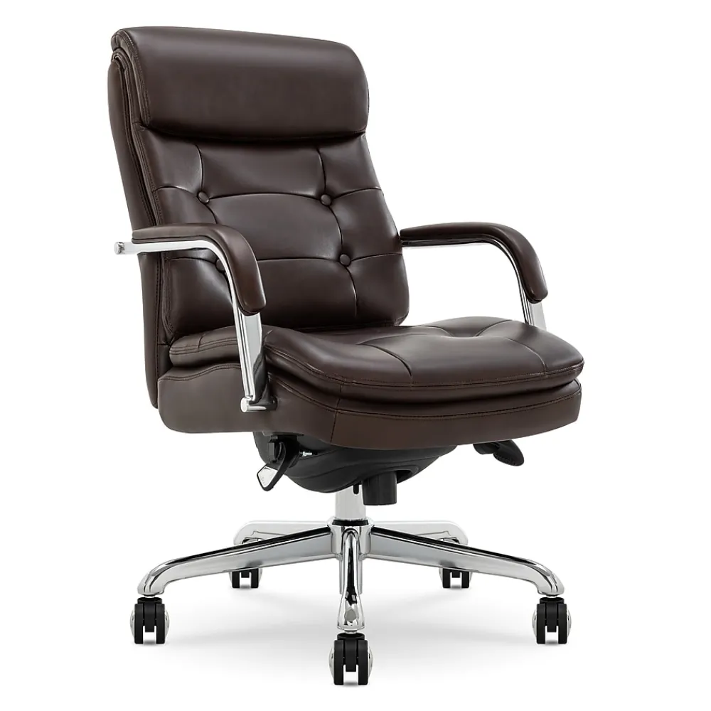 La-Z-Boy offers quality furniture for every room, from stylish sofas and loveseats to supportive recliners and office chairs. For over 95 years, we’ve been bringing comfort and lasting quality to homes, all crafted with a dedication to excellence. We’re passionate about creating furniture that fits your life, with endless styles to match your home. Imagine the La-Z-Boy Sonata Executive Chair as the centerpiece of your office. Its sleek design blends modern sophistication with luxurious comfort. The Sonata embraces minimalist chic with gentle curves accented by timeless button-tufting on both the seat and backrest. The double-stitching adds a tailored finish while the industrial-inspired arms and your choice of polished gold, graphite, or chrome base elevates the entire look. This stunning mid-back chair prioritizes your well-being as much as its aesthetics. Subtle contours in the backrest adapt to your posture, while soft armrests provide ergonomic support for your shoulders. The double-layer, semi-plush seat cushion is filled with high-density foam for comfort throughout the workday. Wrapped in a durable bonded leather that’s easy to care and clean, the Sonata comes in 5 classic colors – White, Gray, Cognac, Black, and Dark Brown – to find the perfect match for your decor. The sturdy metal base lets you swivel around with ease, and the matching dual casters handle even the deepest office rug and carpet. Adjusting the height and tilt is a breeze with the handy seat-side accent fingertip controls to find your ideal seating position. Upgrade your workspace, home office, or the corner office with a chair that mixes effortless style and workday comfort to look as good as it feels to sit in. La-Z-Boy is a trademark of La-Z-Boy Incorporated and is used under license to Living Style (Singapore) Pte. Limited.