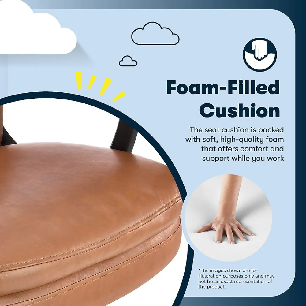 The better you sit, the better you’ll feel. Whether for work, play, or any other activity that has you sitting in our chairs, we believe comfort is everything. We know it’s a big responsibility and take it seriously, just as we do with our mattresses. With over 15 years of making chairs and innovating with designs, materials, and technology, Serta knows what it takes to give you a comfortable sit. Unwind, recharge, and conquer your workday with the Serta Comfort Modern Executive Office Chair. Featuring plush mid-back support, clean lines, luxurious channel-tufting and sculpted arms, this chair will elevate any space. A semi-plush, double-layer cushion seat with generously padded back and armrests provides ample lumbar support and will help you maintain a positive ergonomic posture while surrounding you in comfort. Thick non-recycled Serta quality foam is upholstered in a soft to touch breathable bonded leather to keep you cool during extended sitting times. Available in Black, Brown, Gray, or Cognac with matte black components. A 360º swivel metal base gives you mobility throughout the day and handles weight up to 275 lbs. Plus, the double-wheel casters ensure smooth gliding over rugs and carpet floors so you can scoot around your workspace with ease. Finding your ideal seated position is a breeze with the convenient seat-side lever. Simply adjust the height to perfectly match your stature and desk setup for a personalized fit. A perfect workday companion that adapts to your needs, the Serta Comfort Modern is made for productivity and well-being whether you’re tackling the day from a corner office or at home in the bedroom.