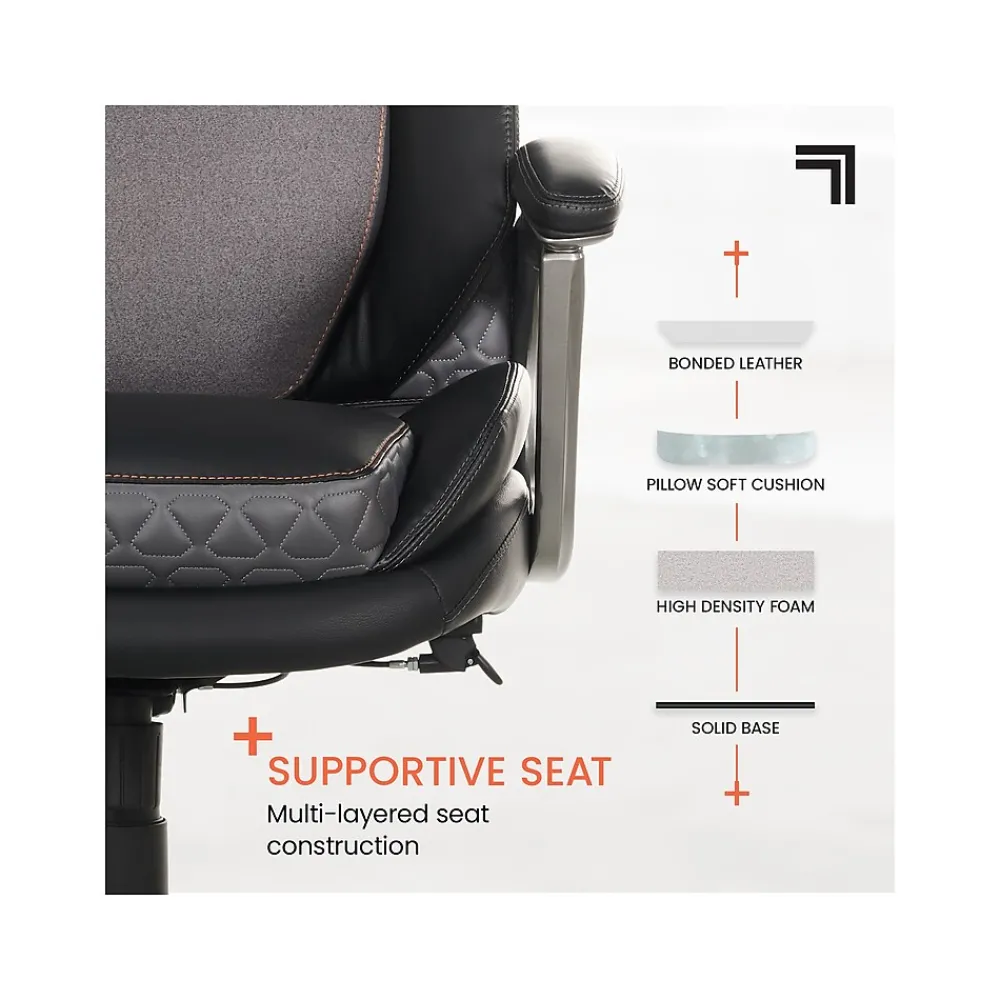 - Made of bonded leather in black and gray over a pillow-soft cushion and high-density foam