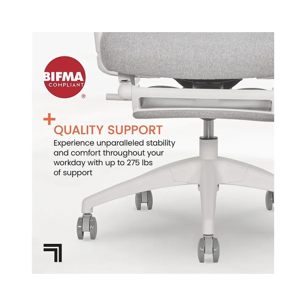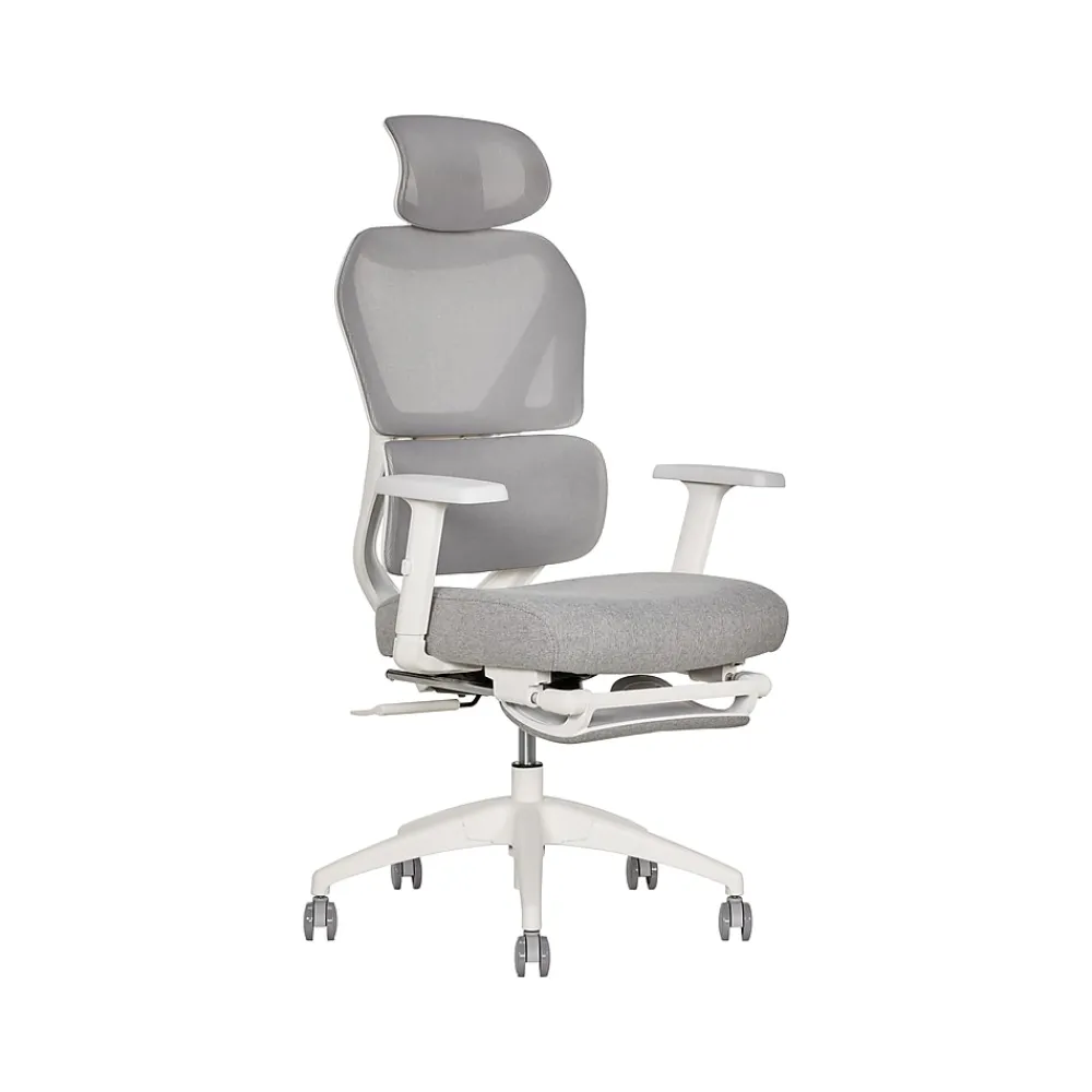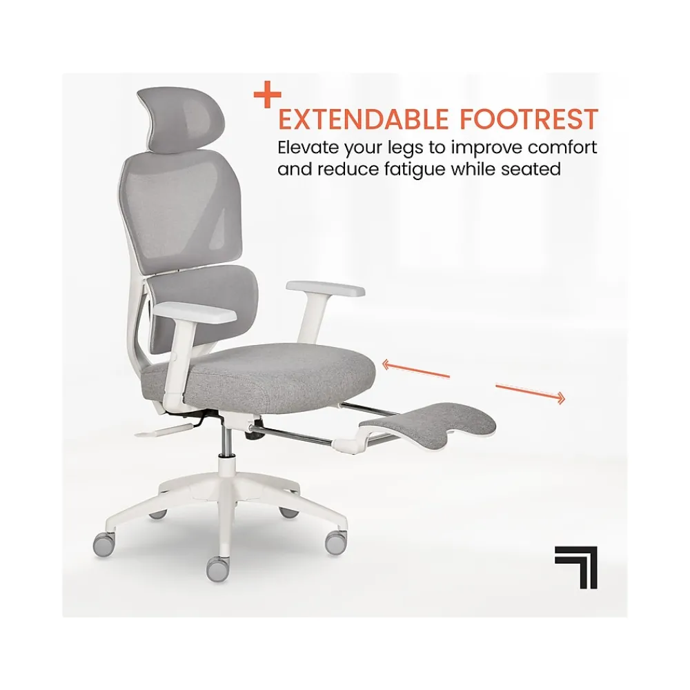 - Features a breathable mesh headrest, backrest and lumbar support, as well as an ergonomic padded seat cushion with soft, comfortable upholstery; comes in light gray with white