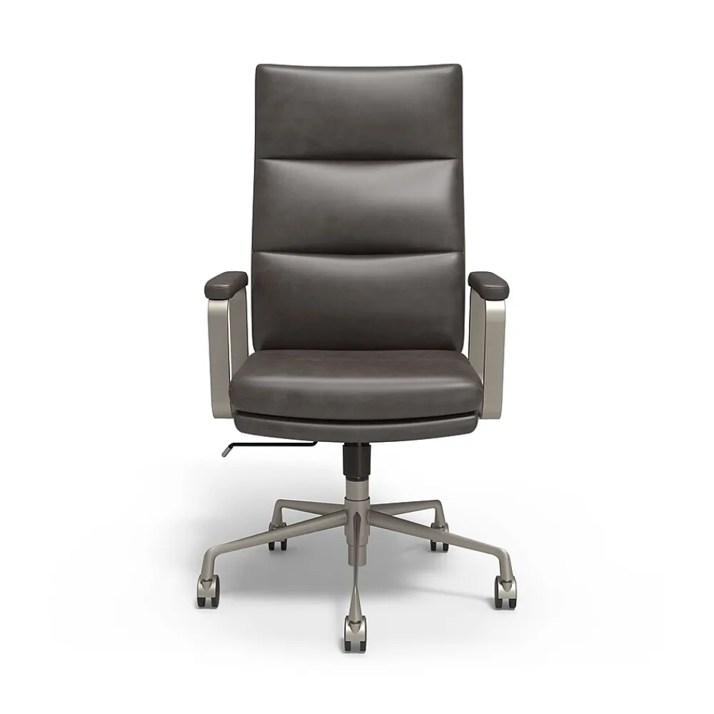 - Stylish yet durable gray bonded leather material is easy to keep clean while providing an elevated, professional look