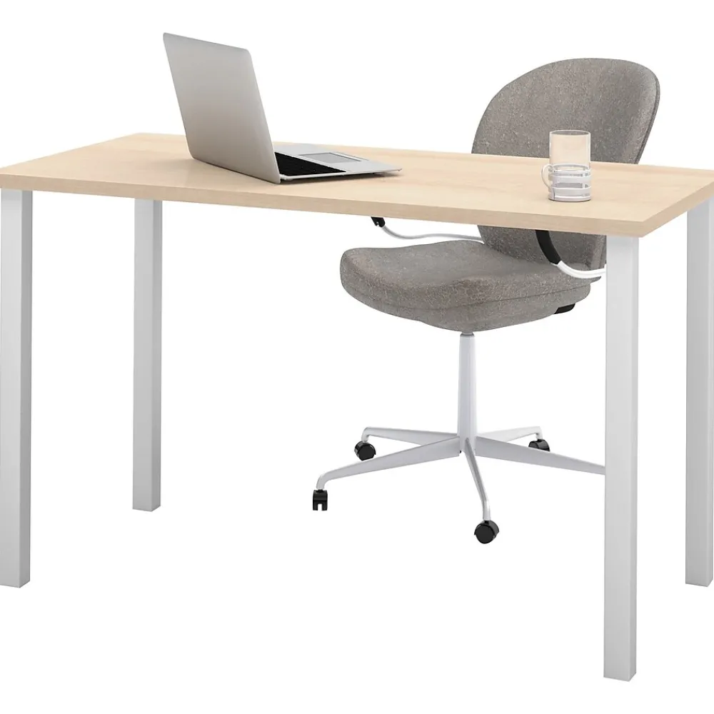 This Table Desk allows you to reach all of your equipment and supplies. The desk’s metal legs in silver bring a touch of style to any office. This desk is designed to be used in many ways. This Table Desk is backed by the Bestar 10 Year Manufacturer‘s Warranty. North American made with local and imported parts.