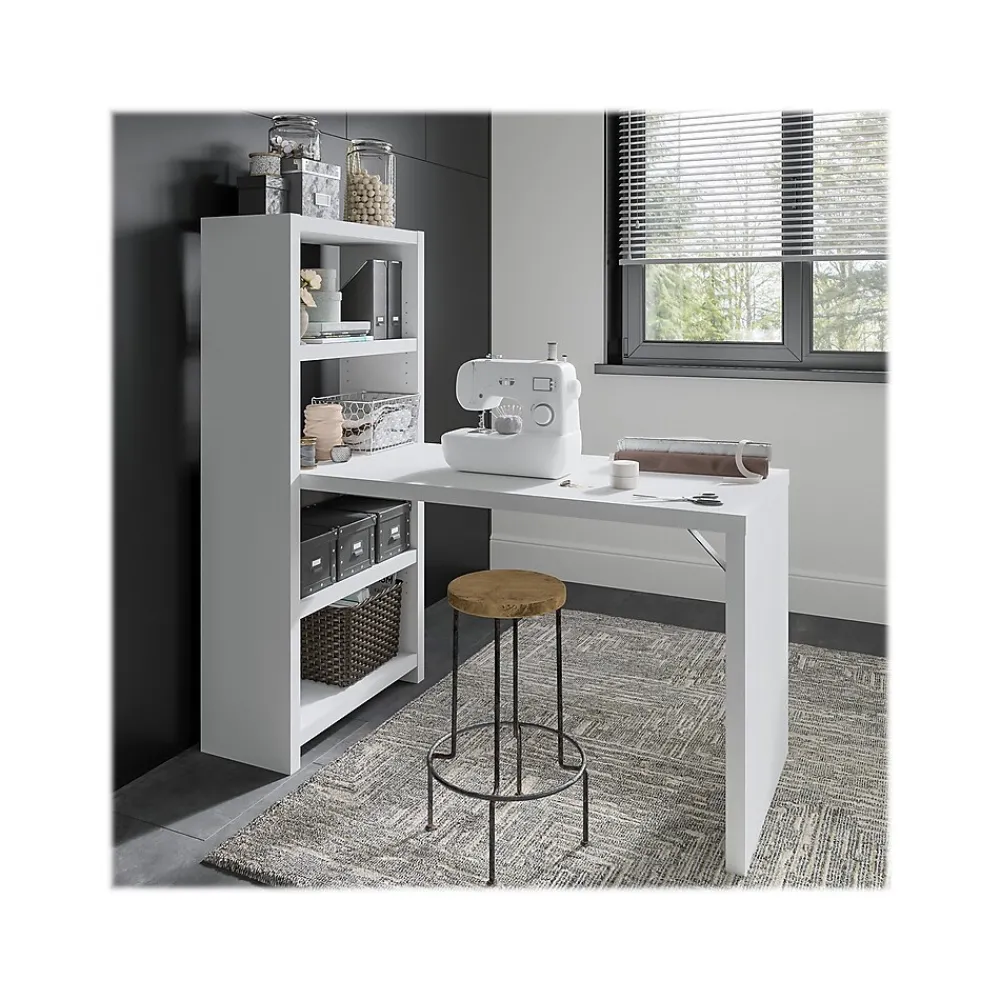 The Bush Business Furniture Echo Bookcase Desk brightens the workspace, kitchen or craft room with a contemporary charm and unique space-saving design. Equal parts fashion and function, the Bookcase Desk offers two adjustable shelves for decoration or organization. Appealing to the modern small business or remote worker, an elegant finish inspires while a thermally fused laminate surface endures years of everyday use. Set up your laptop on the Desk as you store work materials, books and all the accessories to make you feel at home on the Bookcase shelves. An attractive fit for more than just the office, the clever Bookcase Desk provides a compact solution as a Craft Table or Dining Table. From Bush Business Furniture, the Bookcase Desk comes with a 3 Year Warranty and meets ANSI/BIFMA quality standards. Celebrate your unique style and personality with Echo.