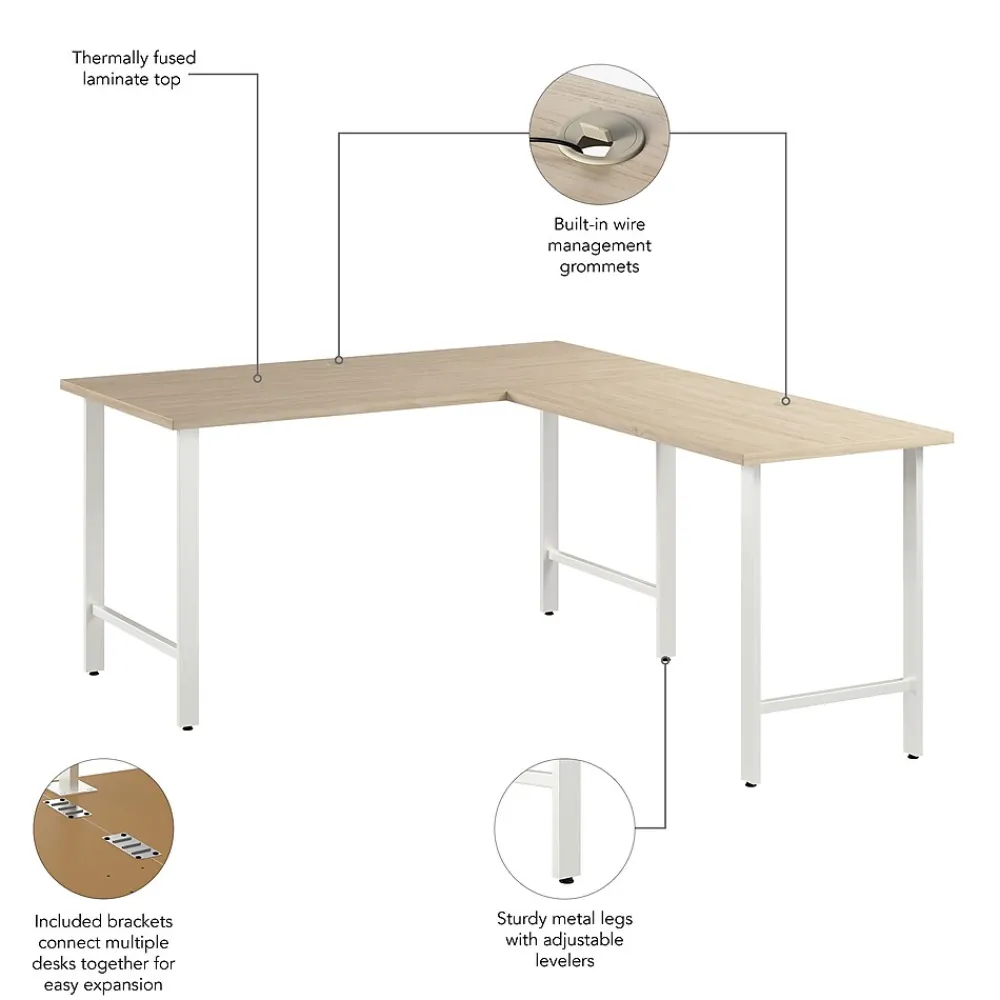 The Bush Business Furniture Hustle 60W x 30D L Shaped Computer Desk with Metal Legs provides the form and function needed to support your entrepreneurial spirit without breaking the bank. An ideal choice for small to medium-size businesses and home offices alike, each modern desk includes a bracket that allows for workstations to connect as your needs evolve and expand. Spread out with materials and equipment on a durable work surface with built-in wire management and a weight capacity of 200 pounds. The L shaped office desk’s thermally fused laminate finish fends off scratches, stains, and other cosmetic damage that occurs from daily use in a busy professional environment. This corner desk has been meticulously designed and tested to meet or exceed ANSI/BIFMA standards for safety, durability, and performance and is backed by a 10 Year Warranty. American made with U.S. and imported parts.