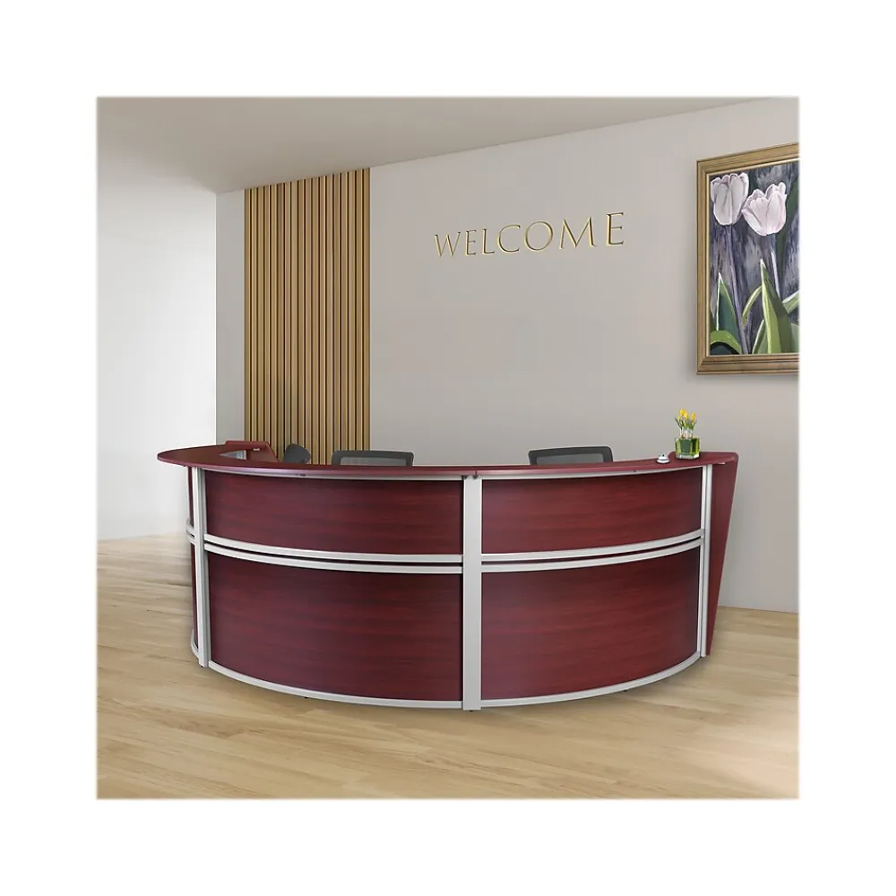 - Greet visitors properly with this curved triple-unit reception desk workstation