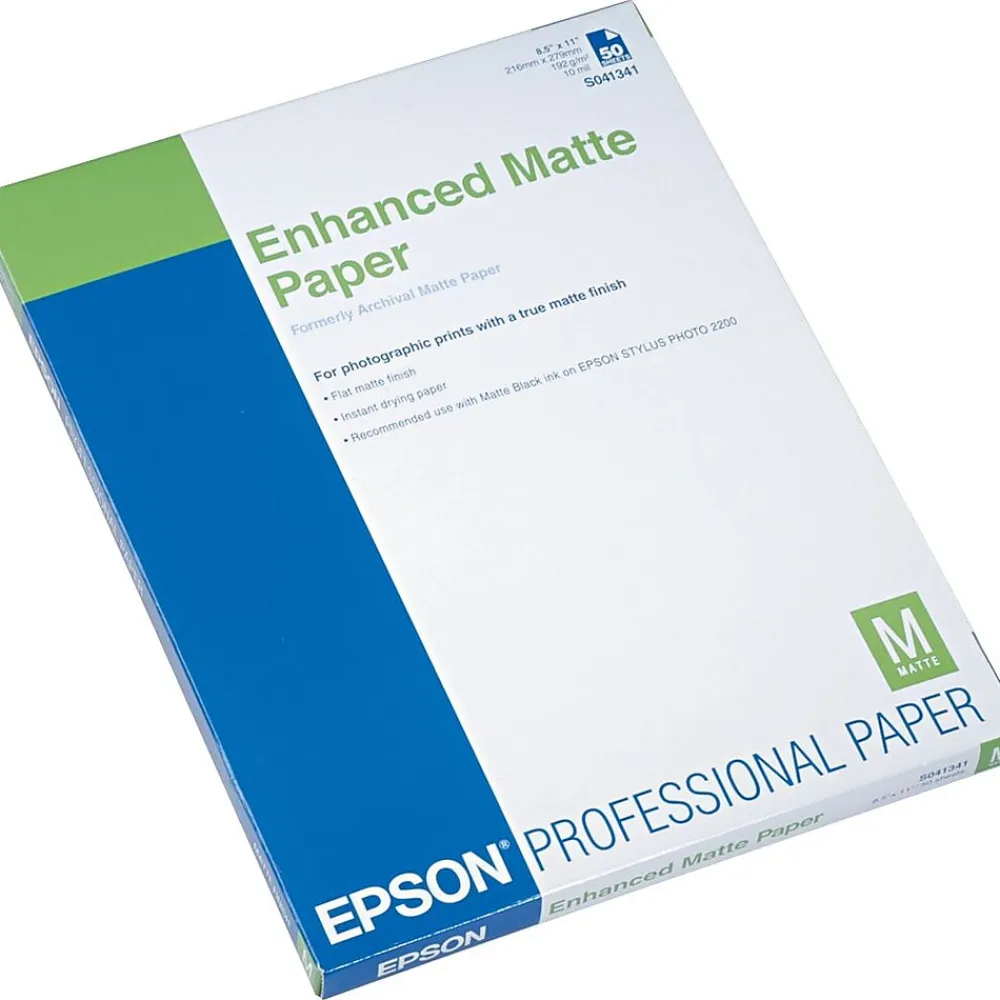 Achieve highly saturated prints with this letter-size matte photo paper. The bright white quality provides a clean background that highlights vivid color images, and the 10.3-mil thickness offers a sturdy surface for producing impressive presentation materials and photos. This 50-sheet pack of Epson photo paper is an ideal project material for professional photographers or hobbyists.