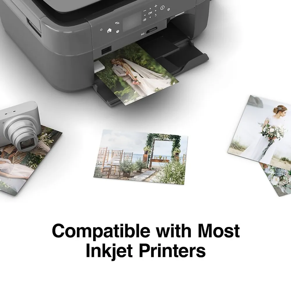 Print clear and vibrant images with this photo gloss paper. This durable paper is tear-resistant, curl-resistant and acid-free, keeping pictures from yellowing or crumbling over long periods of time. This Staples photo supreme paper comes with 50 sheets per pack and dries fast, helping to prevent smudges, while the glossy layer helps provide stunning results each time.