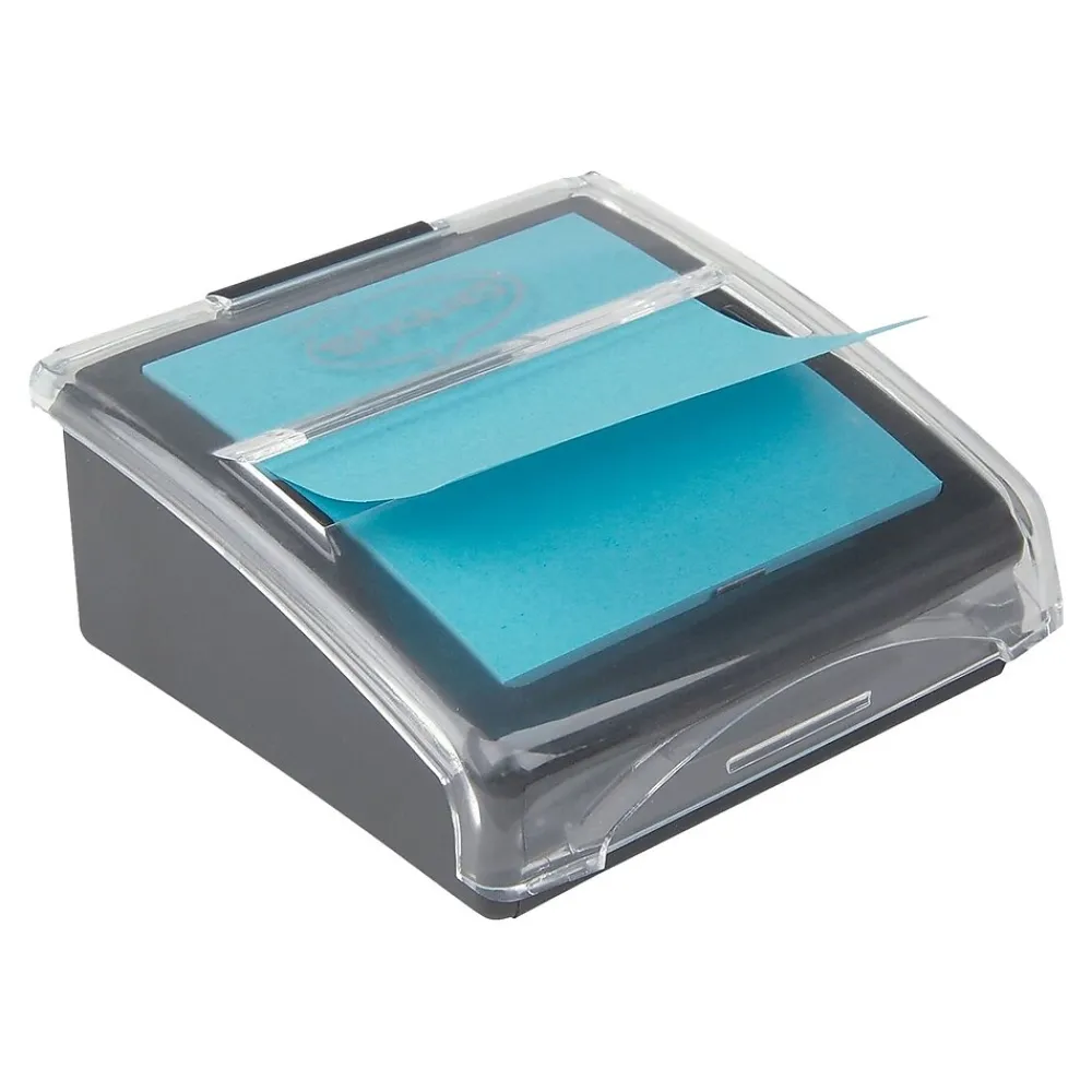 Make note taking convenient with this Staples Stickies pop-up note dispenser. This desktop memo holder is easy to load and manufactured with sturdy plastic for durability. This Staples Stickies pop-up note dispenser has a clear top so you can see when it’s almost time for a refill, while the weighted plastic base lets you grab notes with just one hand.