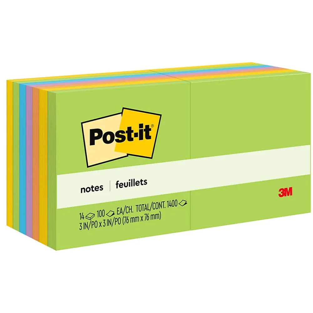 - GET ORGANIZED: Each pack includes 14 pads of 3 in. x 3 in. notes, with 100 sheets per pad, great for your office, work area, or classroom