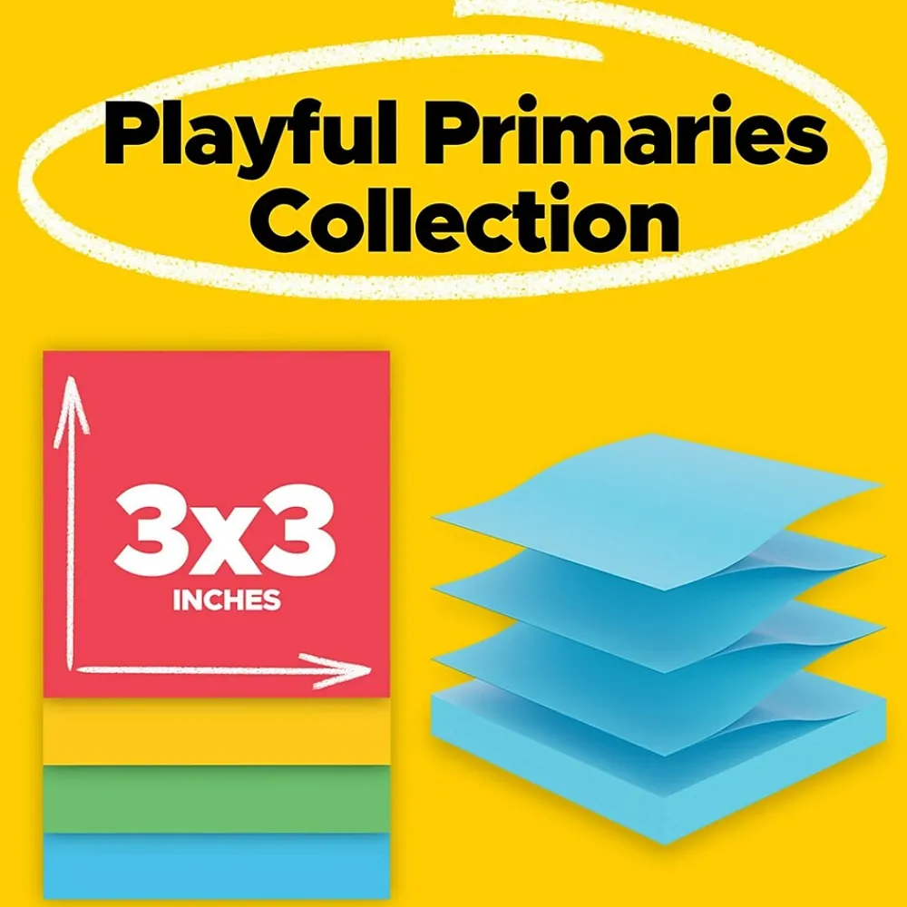 Add joy to the day alongside celebrated rainbow hues from the Playful Primaries collection. Whether jotting down your daily to-do’s, brainstorming big ideas, studying or setting reminders, colors and ideas are always brighter together. These sticky notes feature 2X the sticking power and are accordion-style notes that work to refill Post-it Note Dispensers. They also stick and re-stick – allowing you to move your notes with you throughout your day. They’re ideal for walls, doors, windows and other vertical surfaces, and like all Post-it Notes, they stick securely yet remove cleanly without damage. Keep your ideas across your notebooks, classroom books, calendars or other documents. No tape or tacks are needed with adhesive notes, saving you money and time on office products or school supplies. A great memo pad, these are ideal for using for notes or reminders to yourself or others. Post-it Super Sticky Notes are the perfect solution for shopping lists, reminders, notes on computer screens, time tracking, to-do lists, marking cables, color-coding documents, reminding kids to do chores, storyboarding, scratch paper and agile processing. Each notes sheet is approximately 3 in. x 3 in., with 90 sheets per pad and 18 sticky note pads per pack. These colorful sticky notes include colors from the Playful Primaries collection including red, yellow, blue and green. All Post-it Notes are sourced from certified, renewable and responsibly managed forests, and all Post-it Notes are recyclable, so you can recycle them when they are no longer needed.