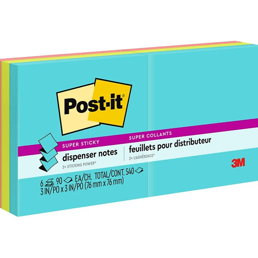 Ideas are out of this world with the electric colors of the Post-it Super Sticky Notes Supernova Neons Collection. Whether jotting down your daily to-do’s, brainstorming big ideas, studying or setting reminders, colors and ideas are always brighter together. These sticky notes feature 2X the sticking power and are accordion-style notes that work to refill Post-it Note Dispensers. They also stick and re-stick – allowing you to move your notes with you throughout your day. They’re ideal for walls, doors, windows and other vertical surfaces, and like all Post-it Notes, they stick securely yet remove cleanly without damage. Keep your ideas across your notebooks, classroom books, calendars or other documents. No tape or tacks are needed with adhesive notes, saving you money and time on office products or school supplies. A great memo pad, these are ideal for using for notes or reminders to yourself or others. Post-it Super Sticky Notes are the perfect solution for shopping lists, reminders, notes on computer screens, time tracking, to-do lists, marking cables, color-coding documents, reminding kids to do chores, storyboarding, scratch paper and agile processing. Each notes sheet is approximately 3 in. x 3 in., with 90 sheets per pad and 6 sticky note pads per pack. These colorful sticky notes include colors from the Supernova Neons collection including aqua, lime and pink. All Post-it Notes are sourced from certified, renewable and responsibly managed forests, and all Post-it Notes are recyclable, so you can recycle them when they are no longer needed.