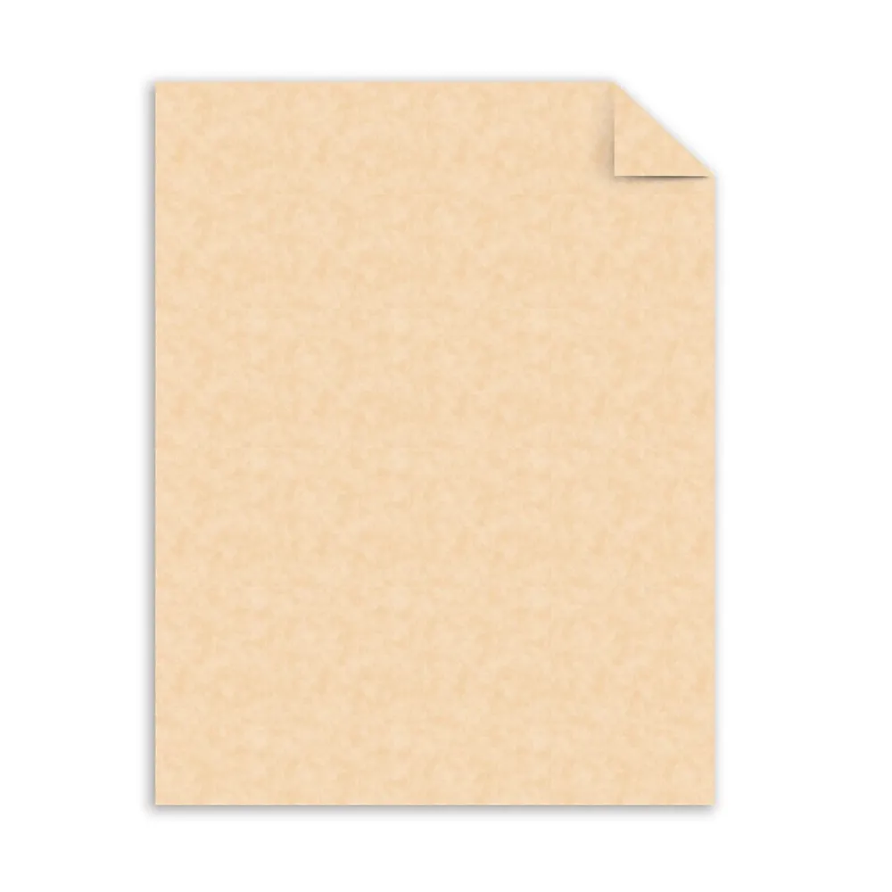 Create announcements for special occasions on this parchment paper. It has a copper finish, adding a luxurious touch, and each box contains 500 sheets for printing large quantities. The specialty paper is compatible with inkjet and laser printers, providing flexibility in printing methods. This Southworth parchment paper is 8.5 x 11 inches to fit in standard-sized printers.
